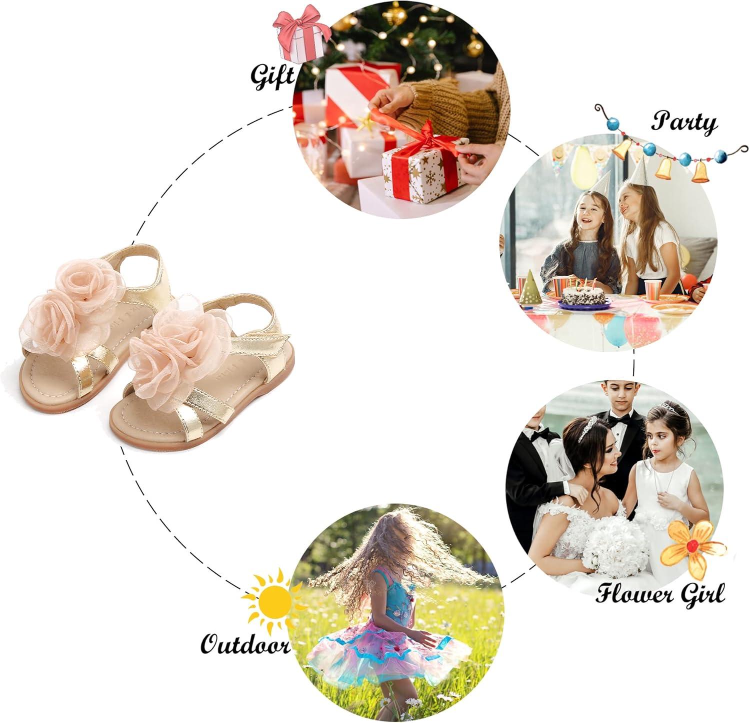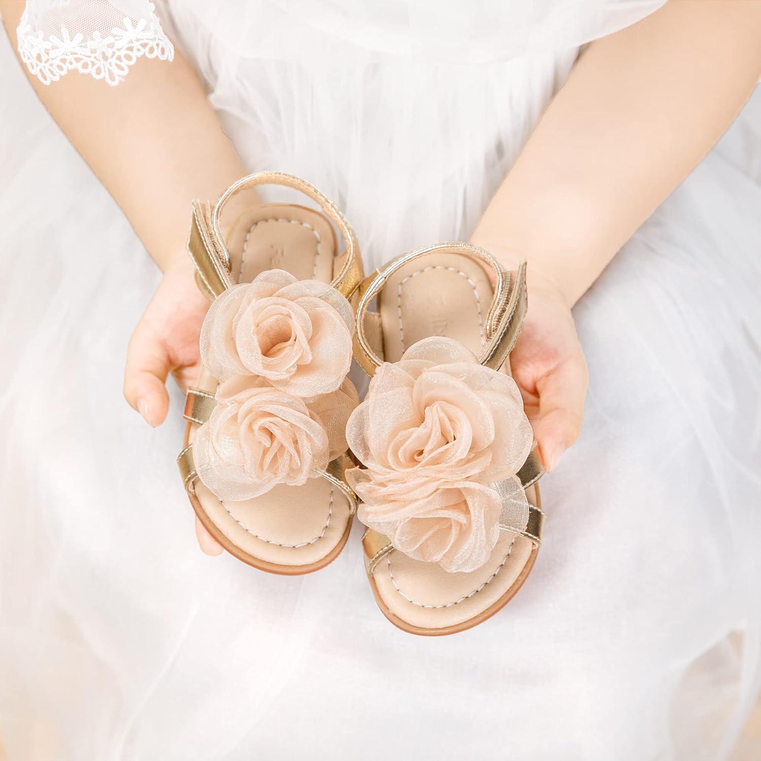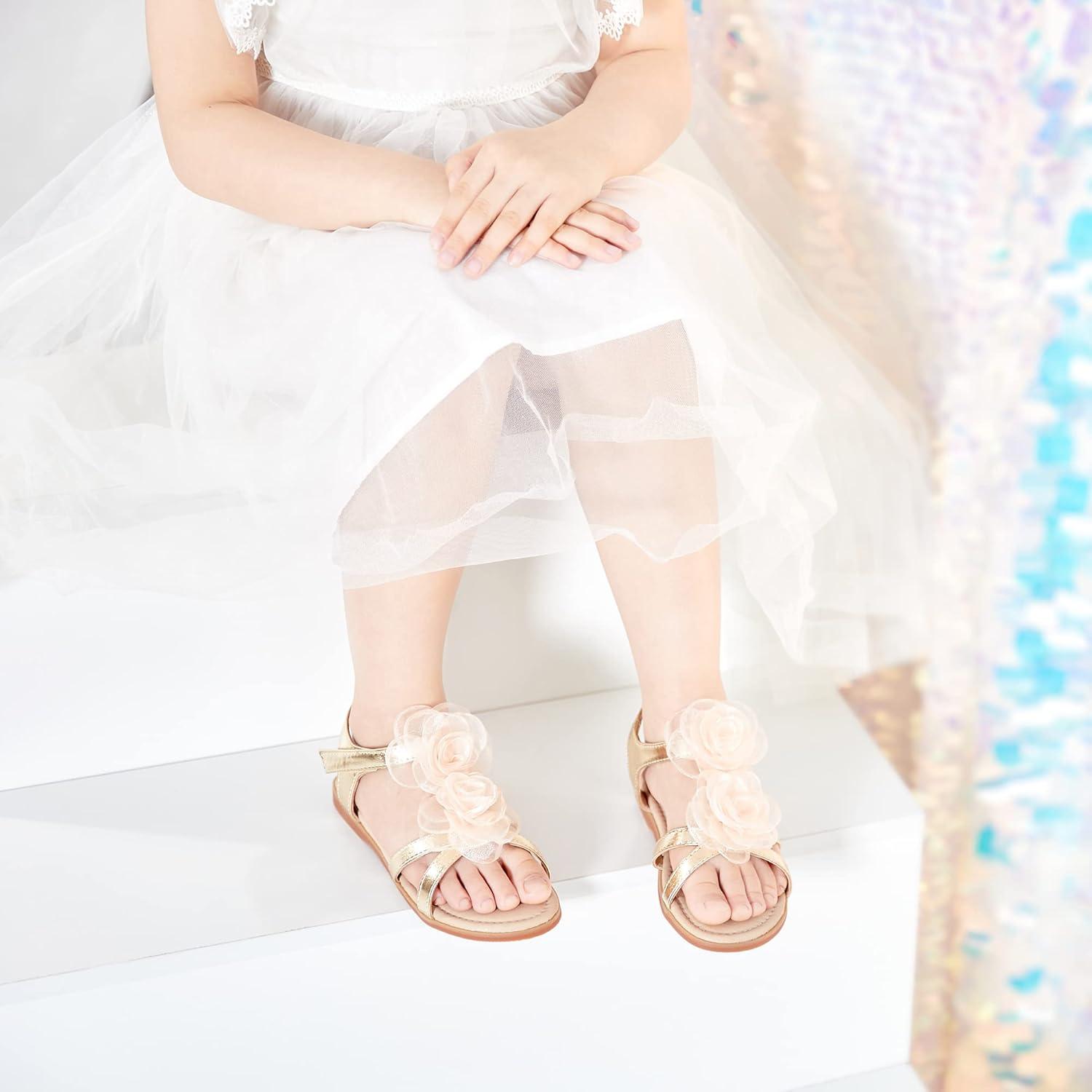 Felix & Flora Toddler Girl Sandals - Flower Girl Dress Shoes Open Toe Little Kid Summer Flats