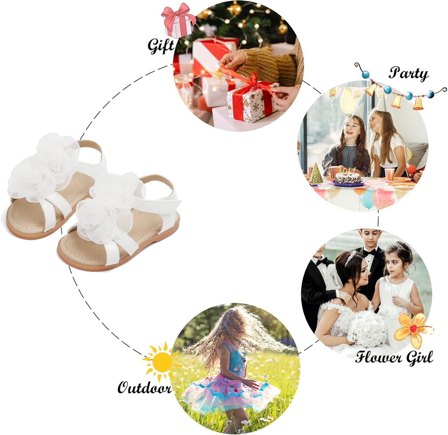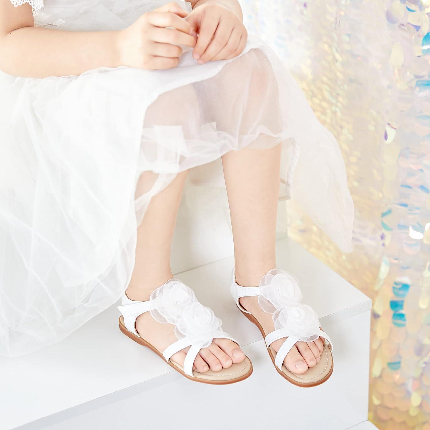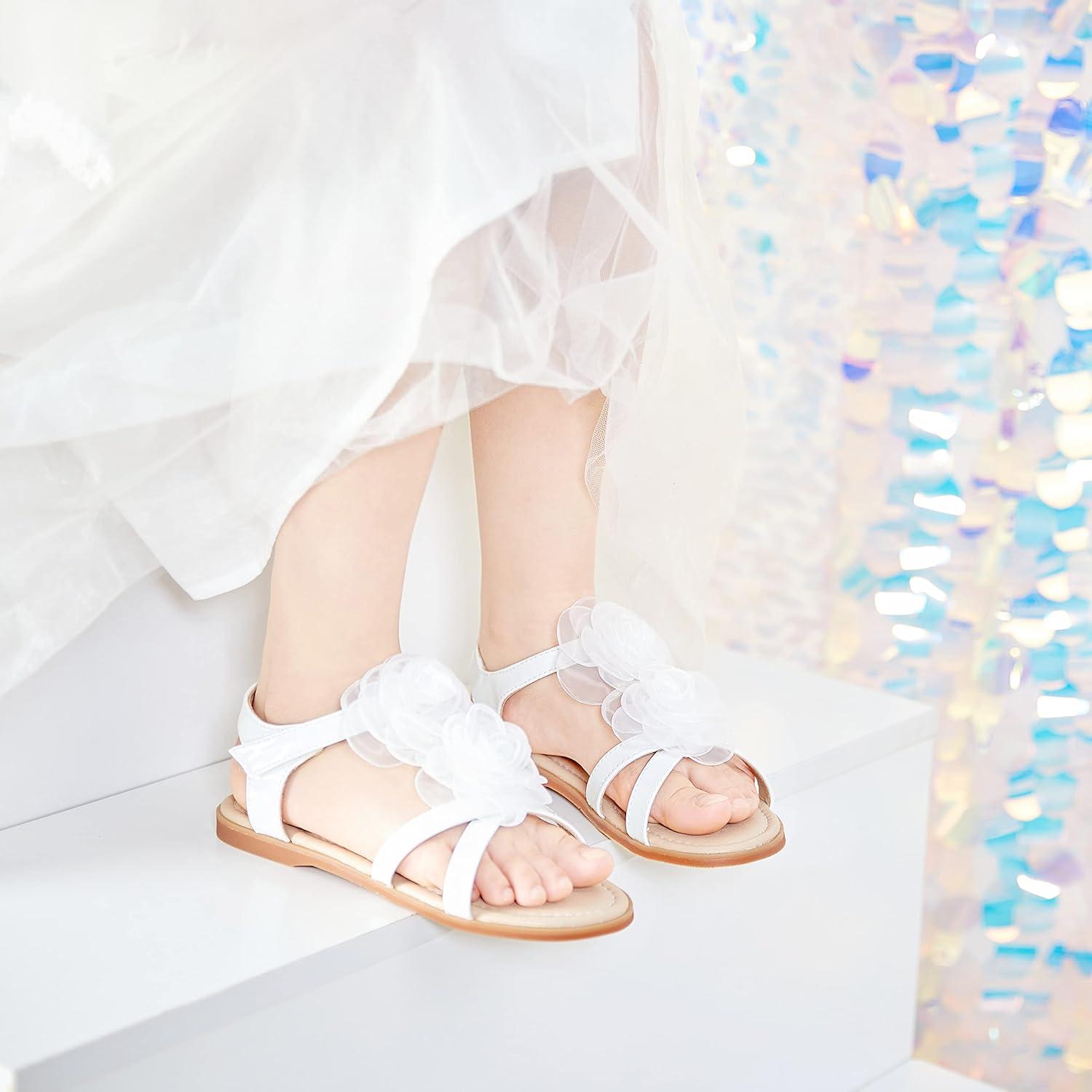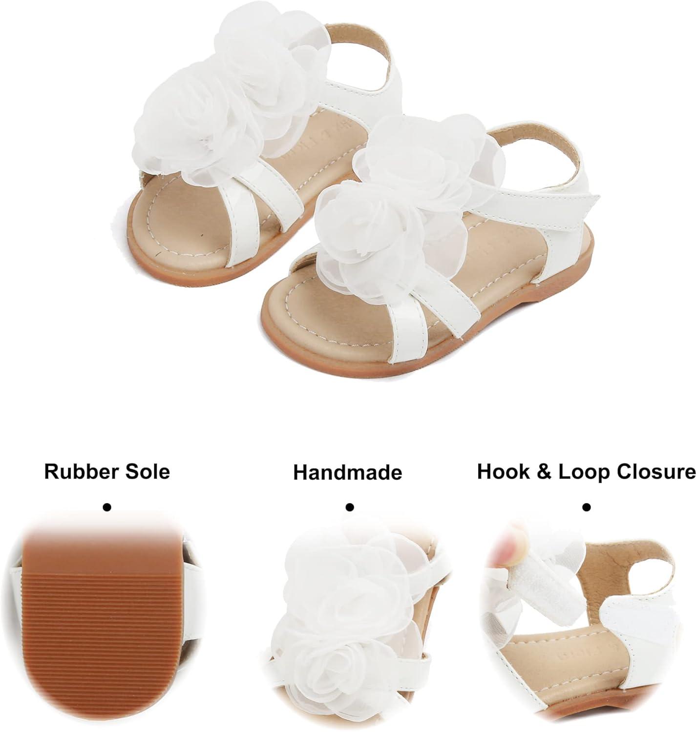 Felix & Flora Toddler Girls Sandals Soft Rubber Flats Summer Baby Flower Girl Shoes.(Bc254-white)
