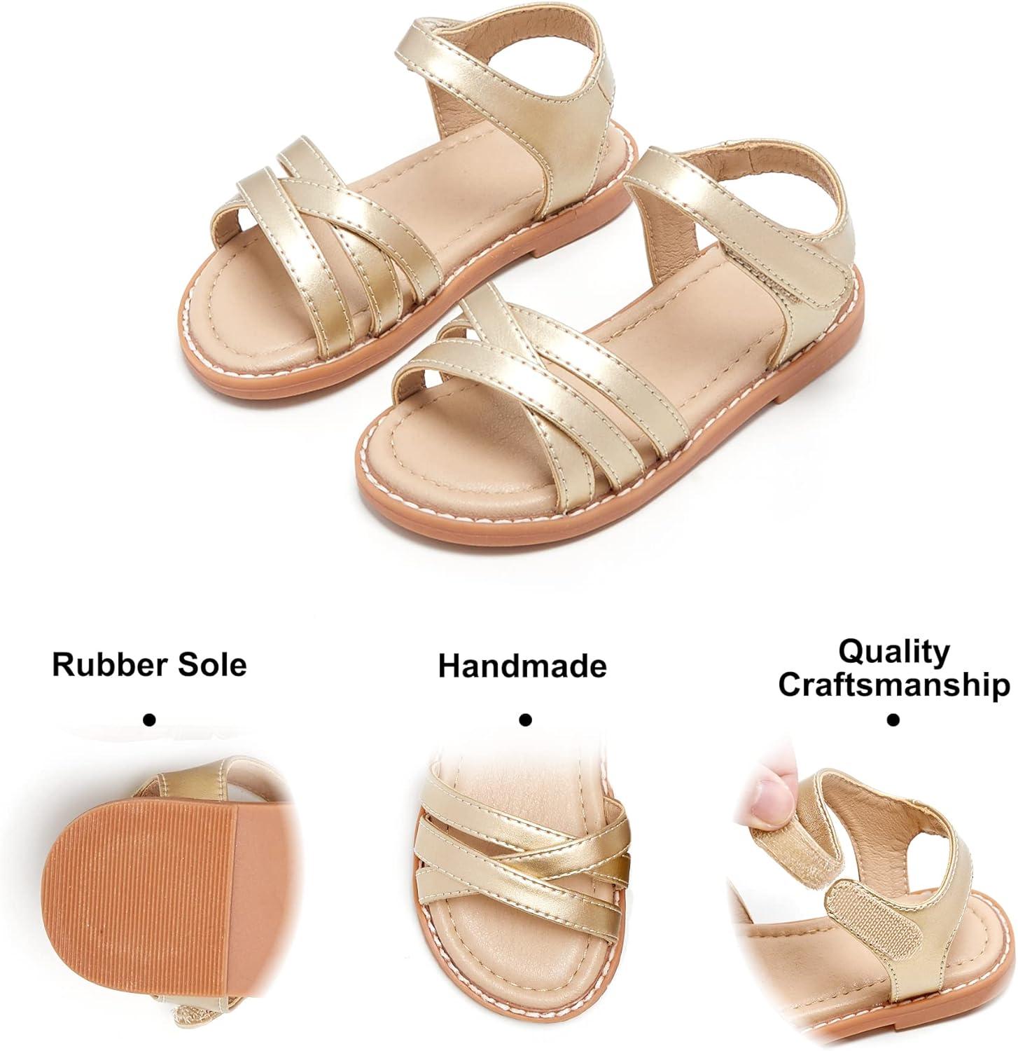 Felix & Flora Toddler Girl Sandals – Flower Girl Dress Shoes Open Toe Little Kid Summer Flats(Bc291-champagne Gold)