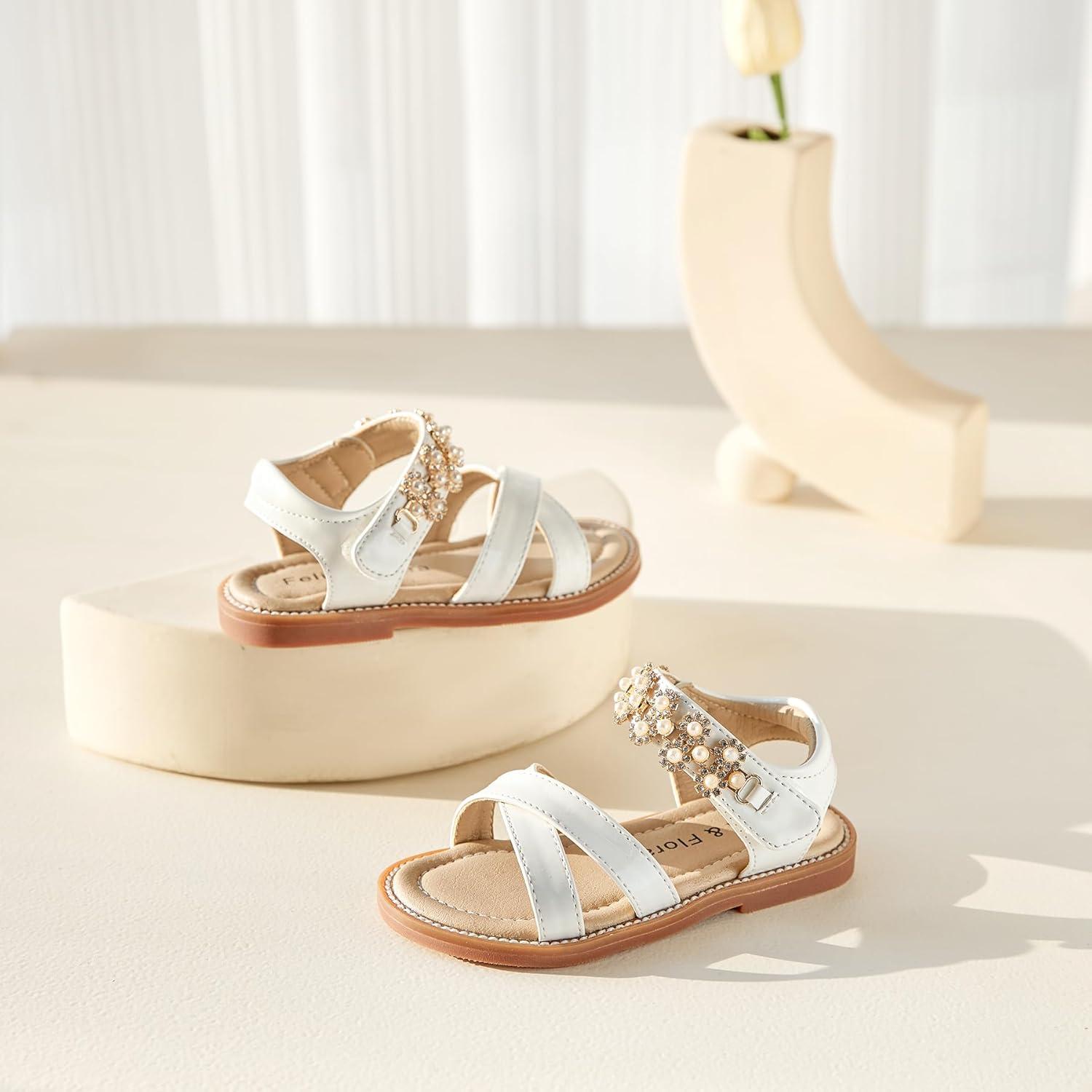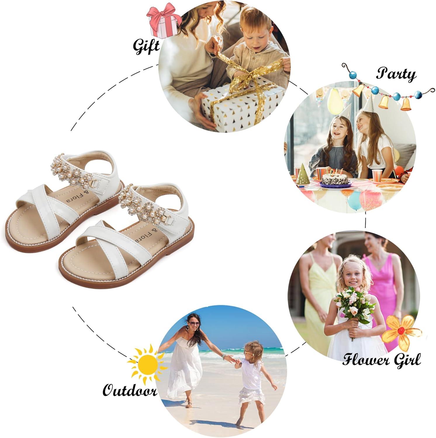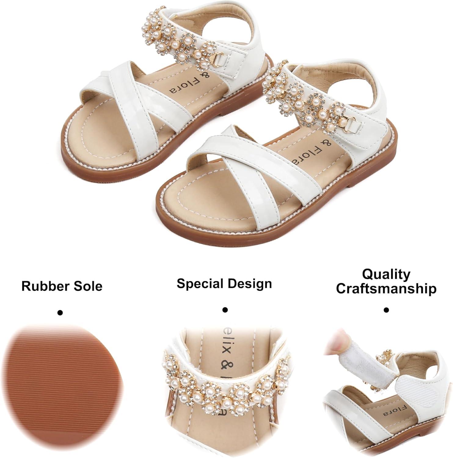 Felix & Flora Toddler Girls Sandals Soft Rubber Flats Summer Baby Flower Girl Shoes.(Bc284-white)