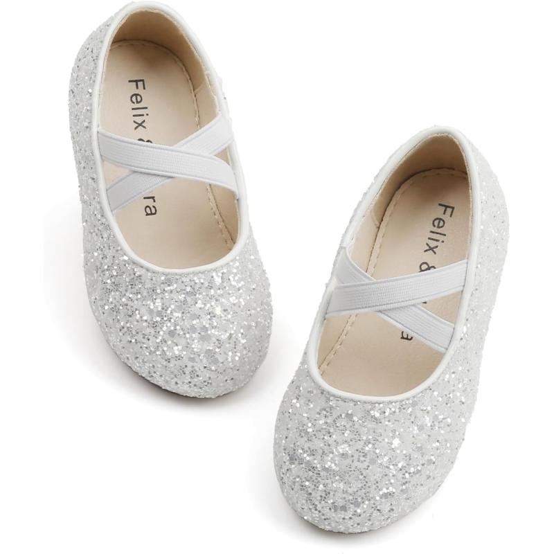 Felix & Flora Toddler Little Girl Dress Shoes – Girl Mary Jane Flats Party School Wedding(B869-glitter White)