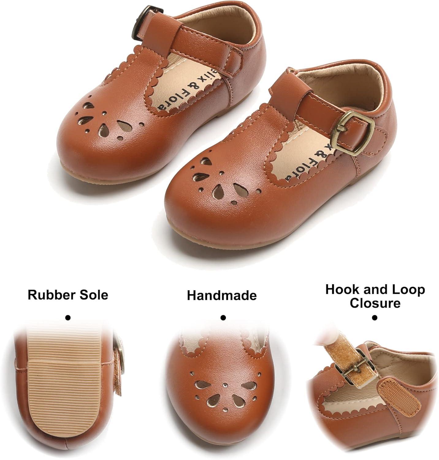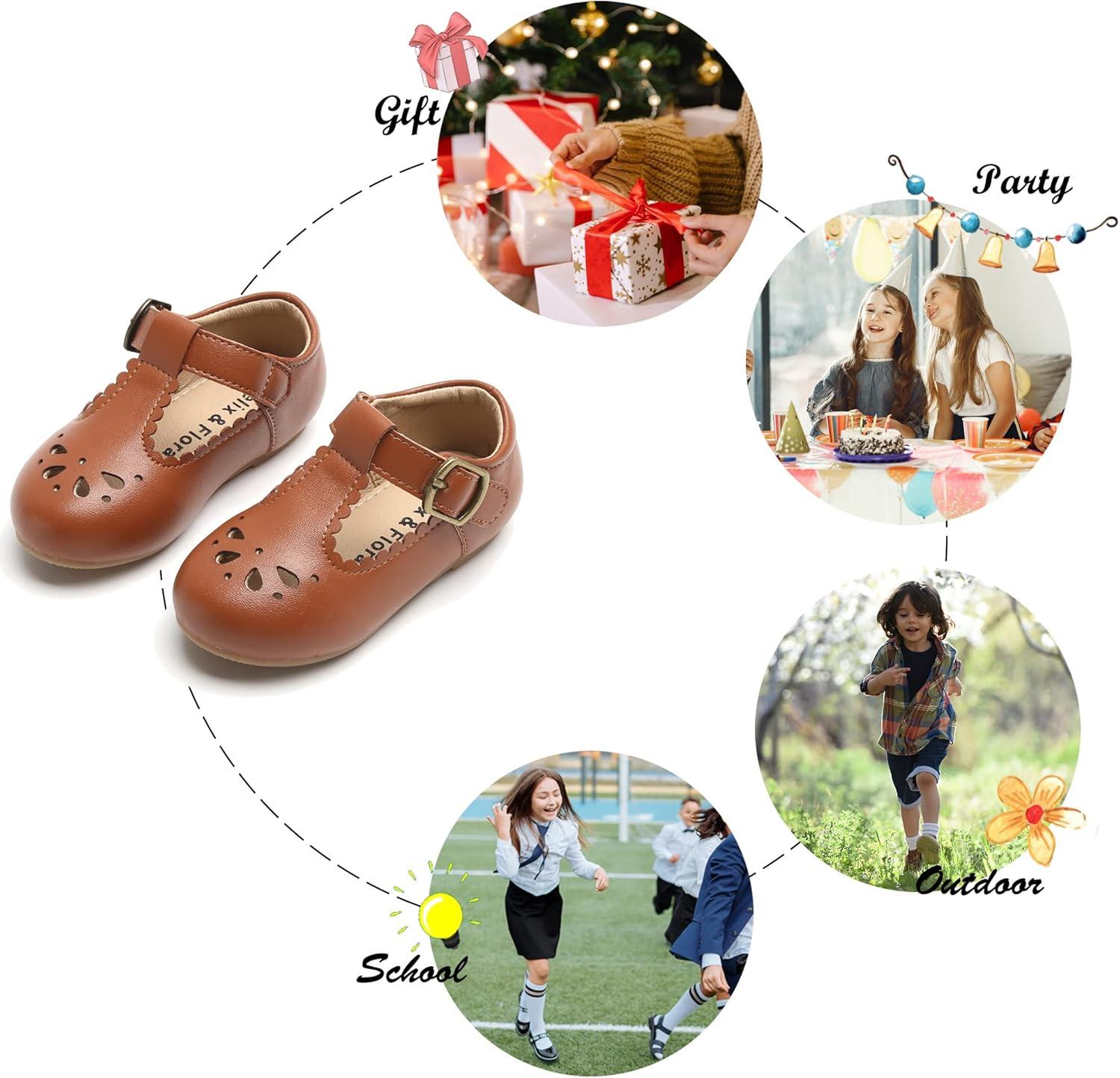 Felix & Flora Toddler Little Girl Flat Oxfords Dress Shoes – Mary Jane Princess for Girl Party School Shoes.(B396-brown)