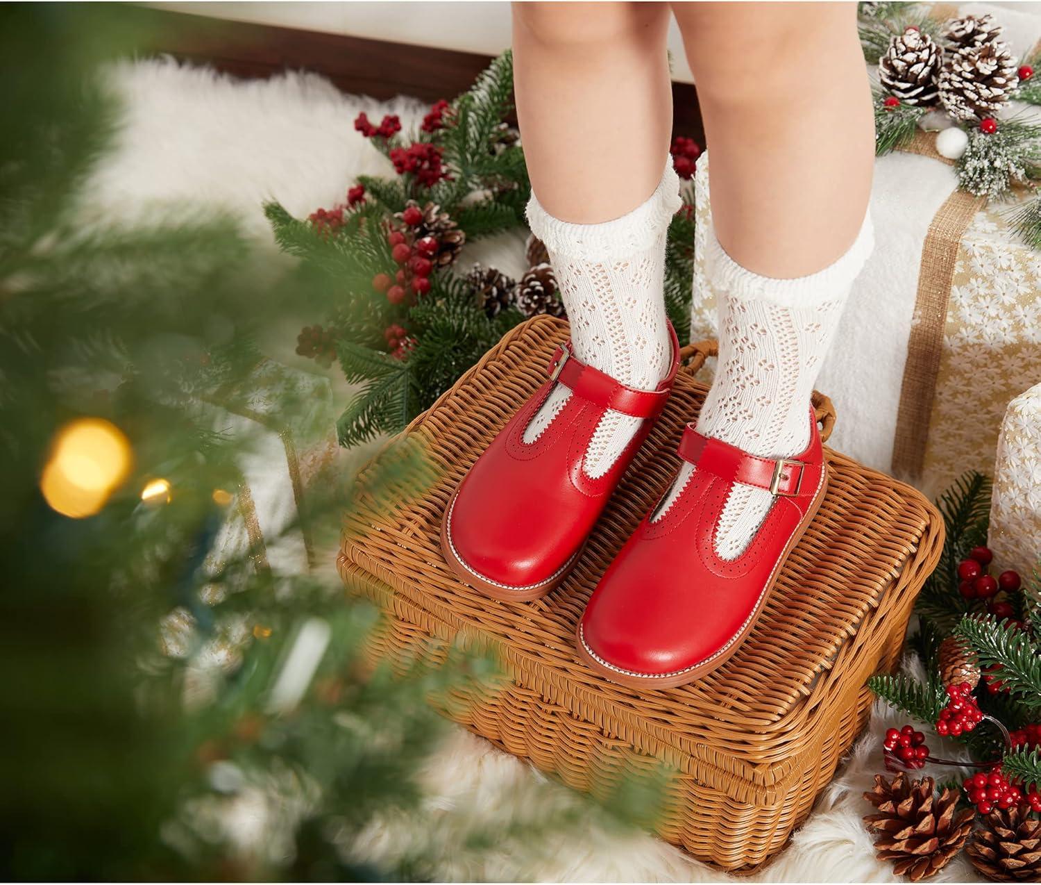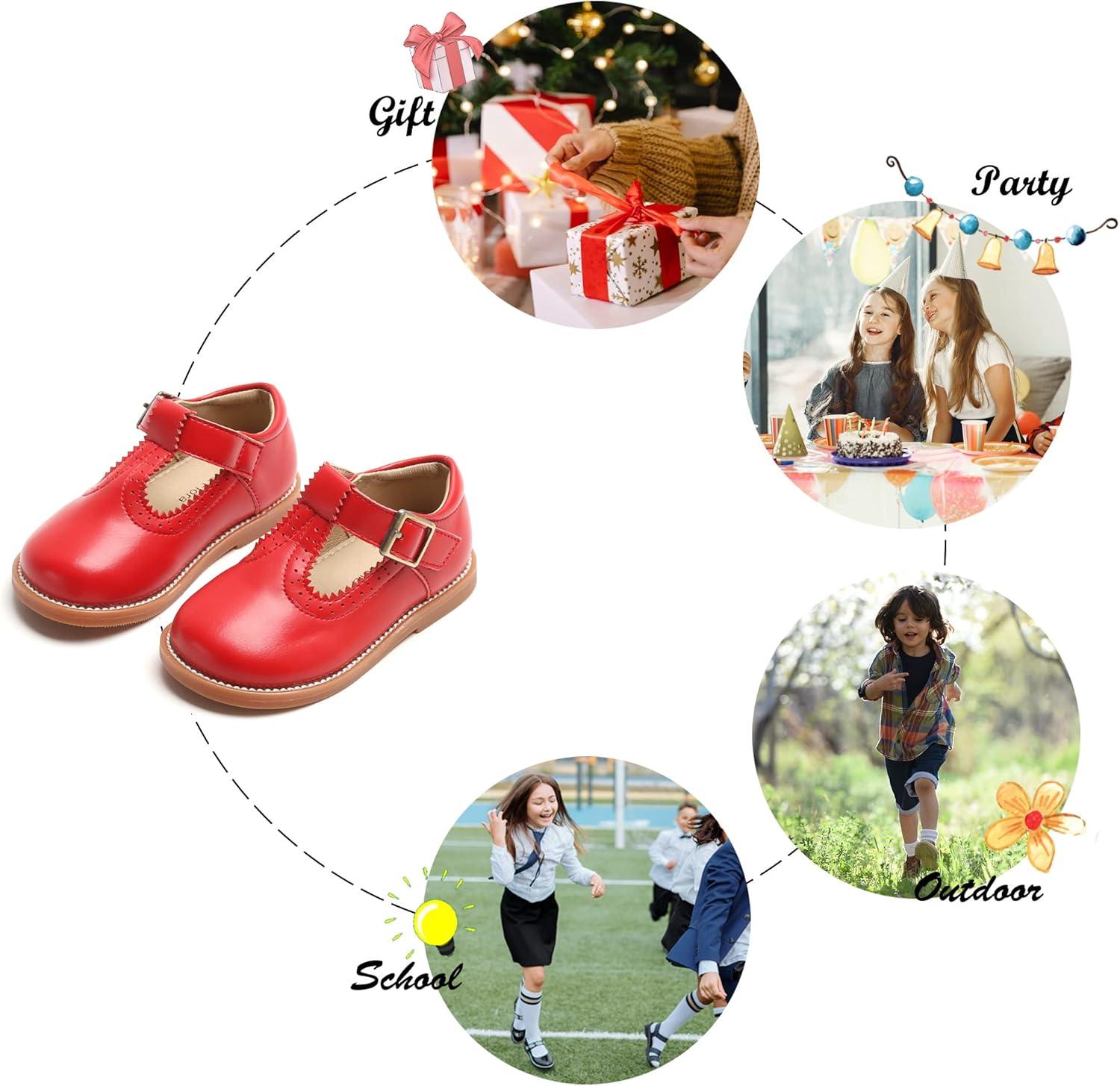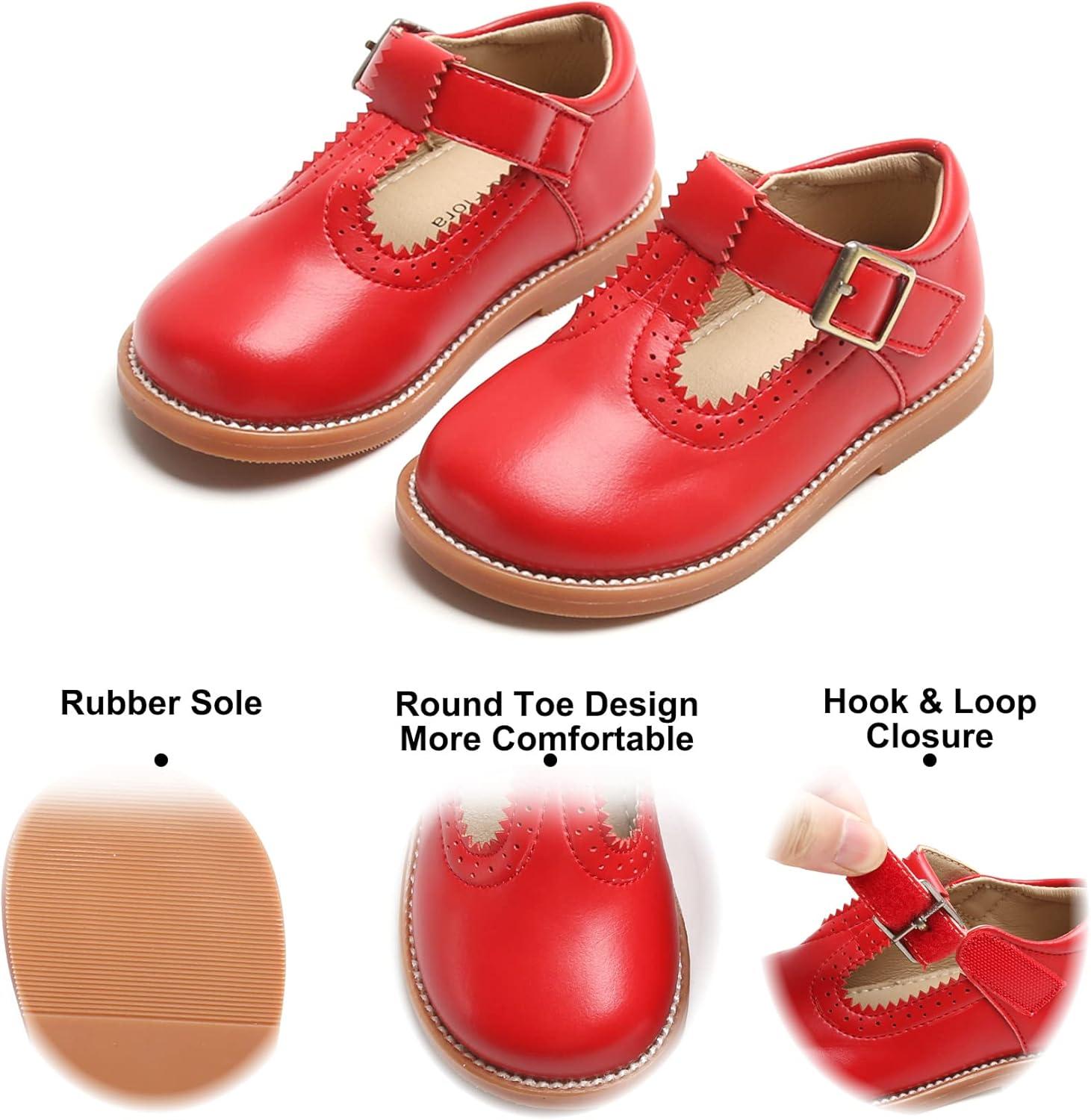 Felix & Flora Toddler Little Girl Mary Jane Dress Shoes – Ballet Flats for Easter Flower Girl Party School Shoes.(B348-red)