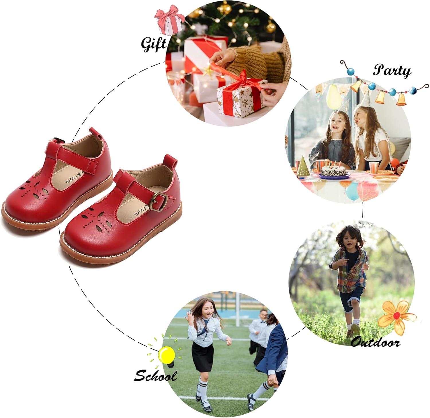 Felix & Flora Toddler Little Girl Mary Jane Dress Shoes – Ballet Flats for Easter Flower Girl Party School Shoes.(B395-red)