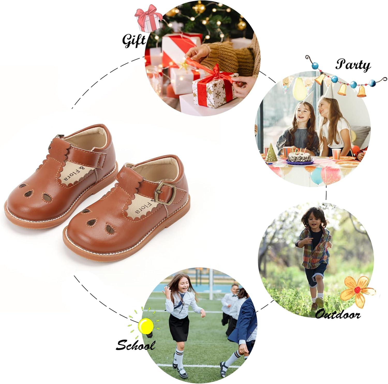 Felix & Flora Toddler Little Girl Mary Jane Dress Shoes – Ballet Flats for Girl Party School Shoes(B383-brown)