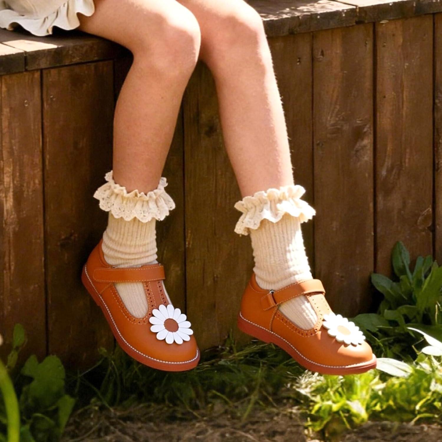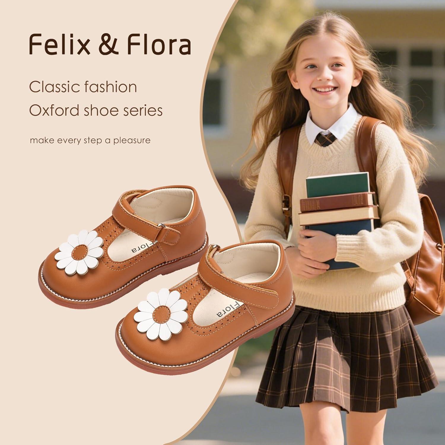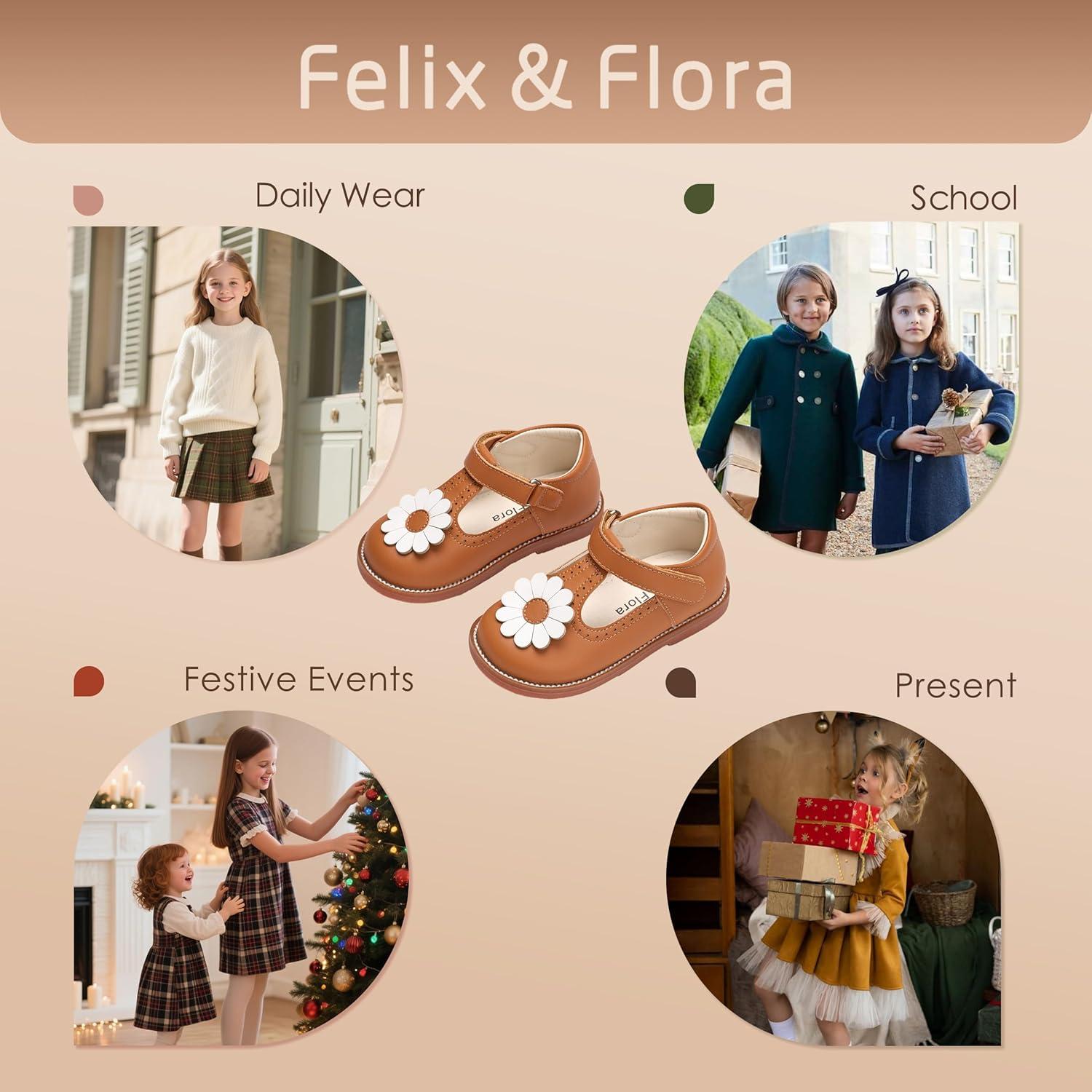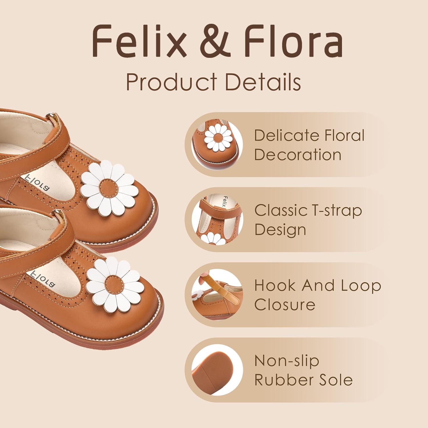 Felix & Flora Toddler Little Girl Mary Jane Dress Shoes – Ballet Flats for Easter Flower Girl Party School Shoes.(B435-brown)