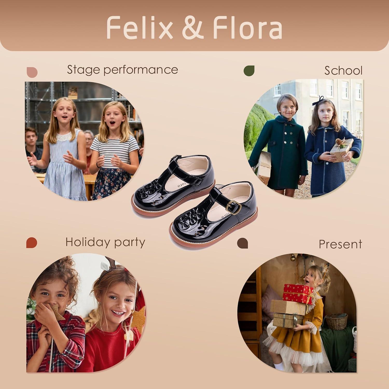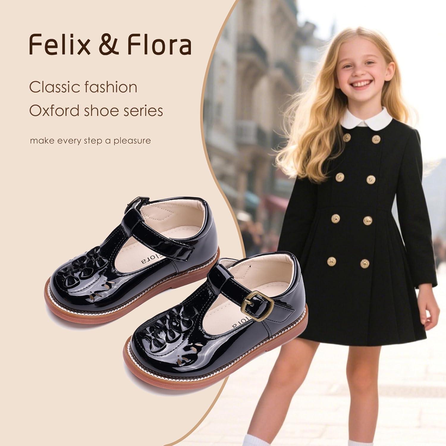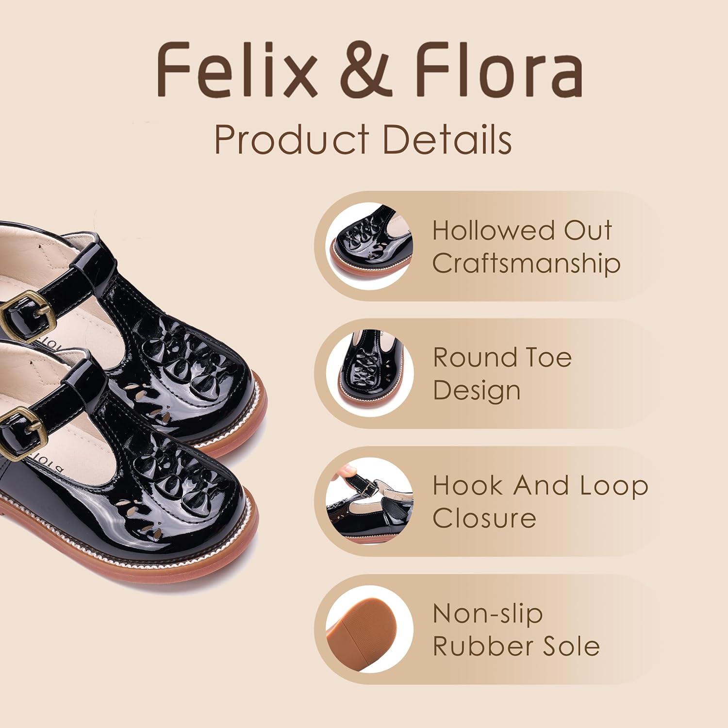 Felix & Flora Toddler Little Girl Mary Jane Dress Shoes – Ballet Flats for Easter Flower Girl Party School Shoes.(B438-pl Black)