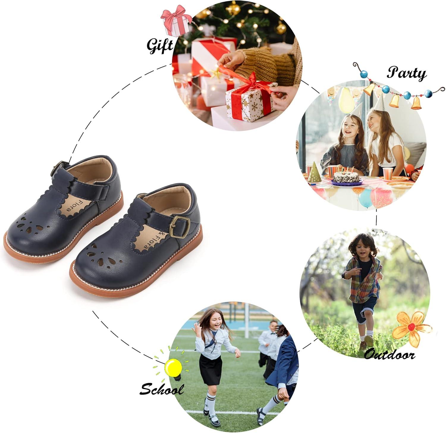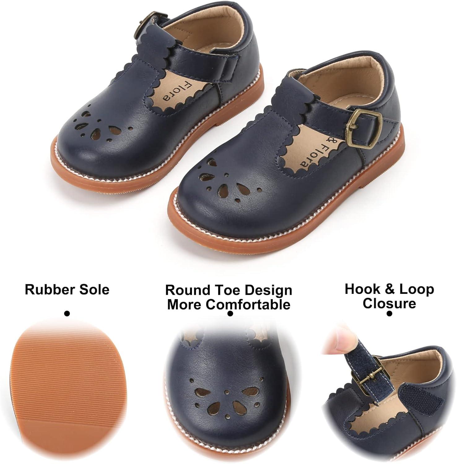 Felix & Flora Toddler Little Girl Mary Jane Dress Shoes – Ballet Flats for Girl Party School Shoes(B366-navy Blue)