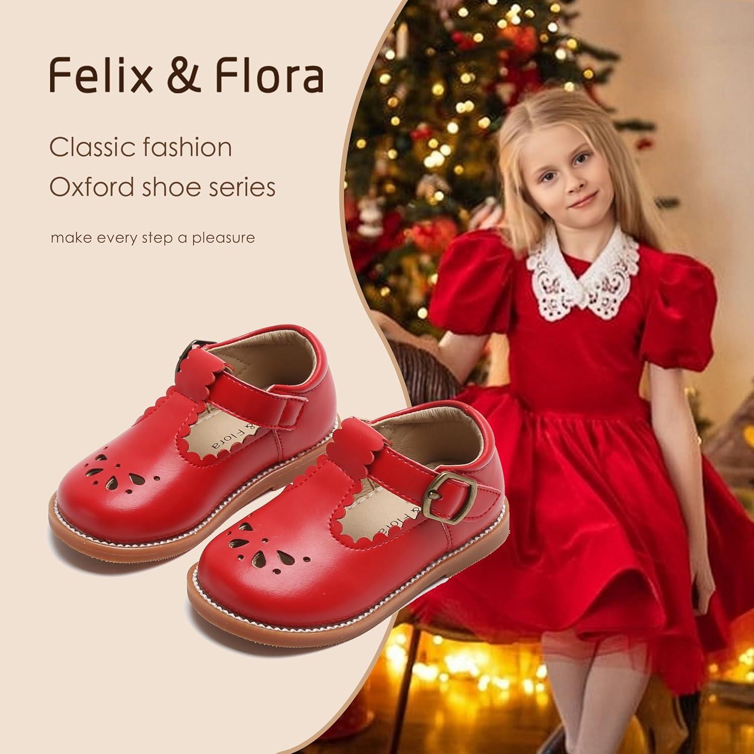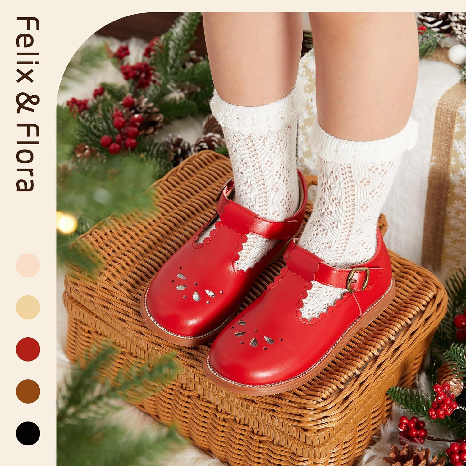 Felix & Flora Toddler Little Girl Mary Jane Dress Shoes – Ballet Flats for Girl Party School Shoes(B366-red)