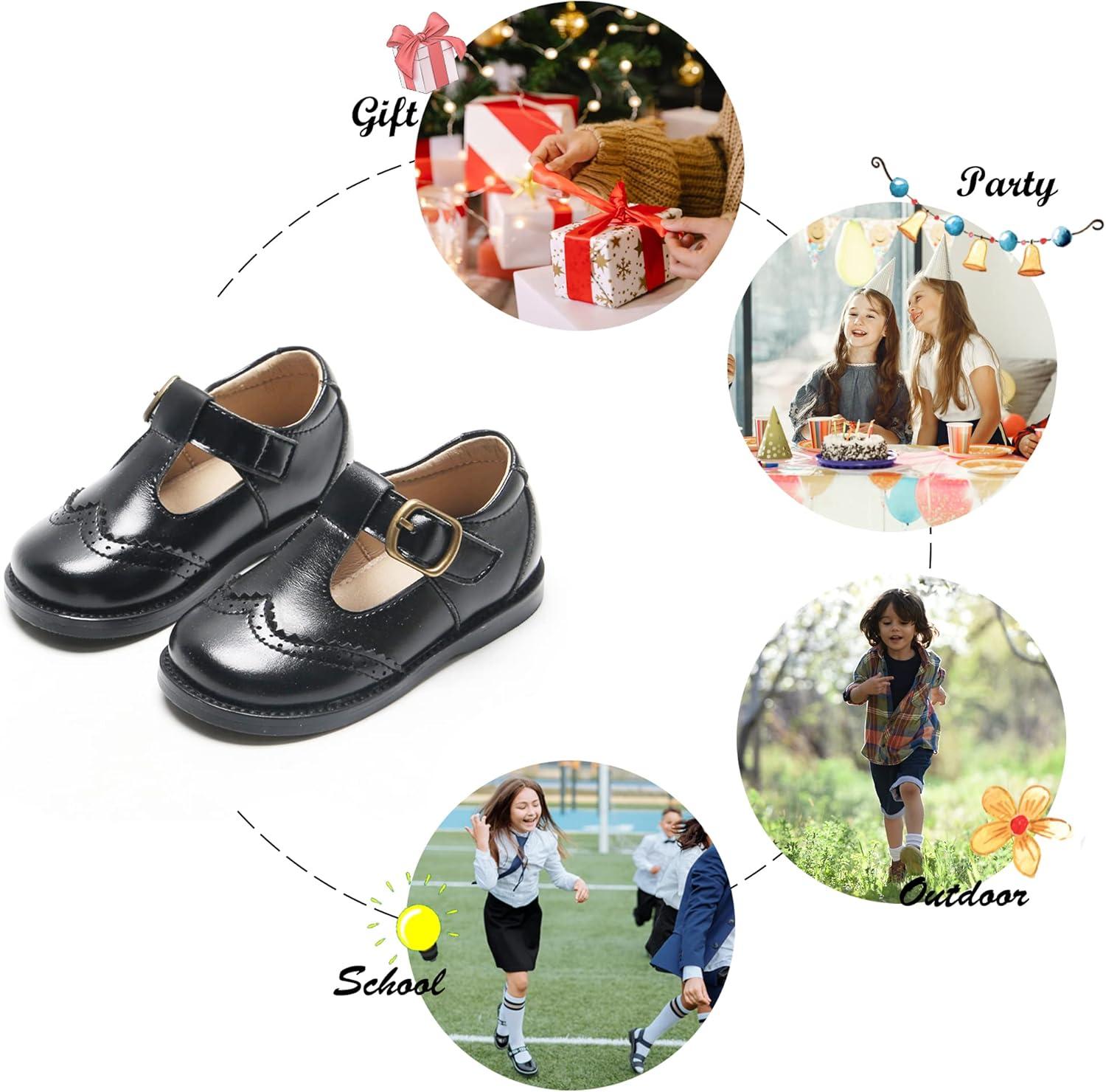 Felix & Flora Toddler Little Girl Mary Jane Dress Shoes – Ballet Flats for Girl Party School Shoes(B368-black)