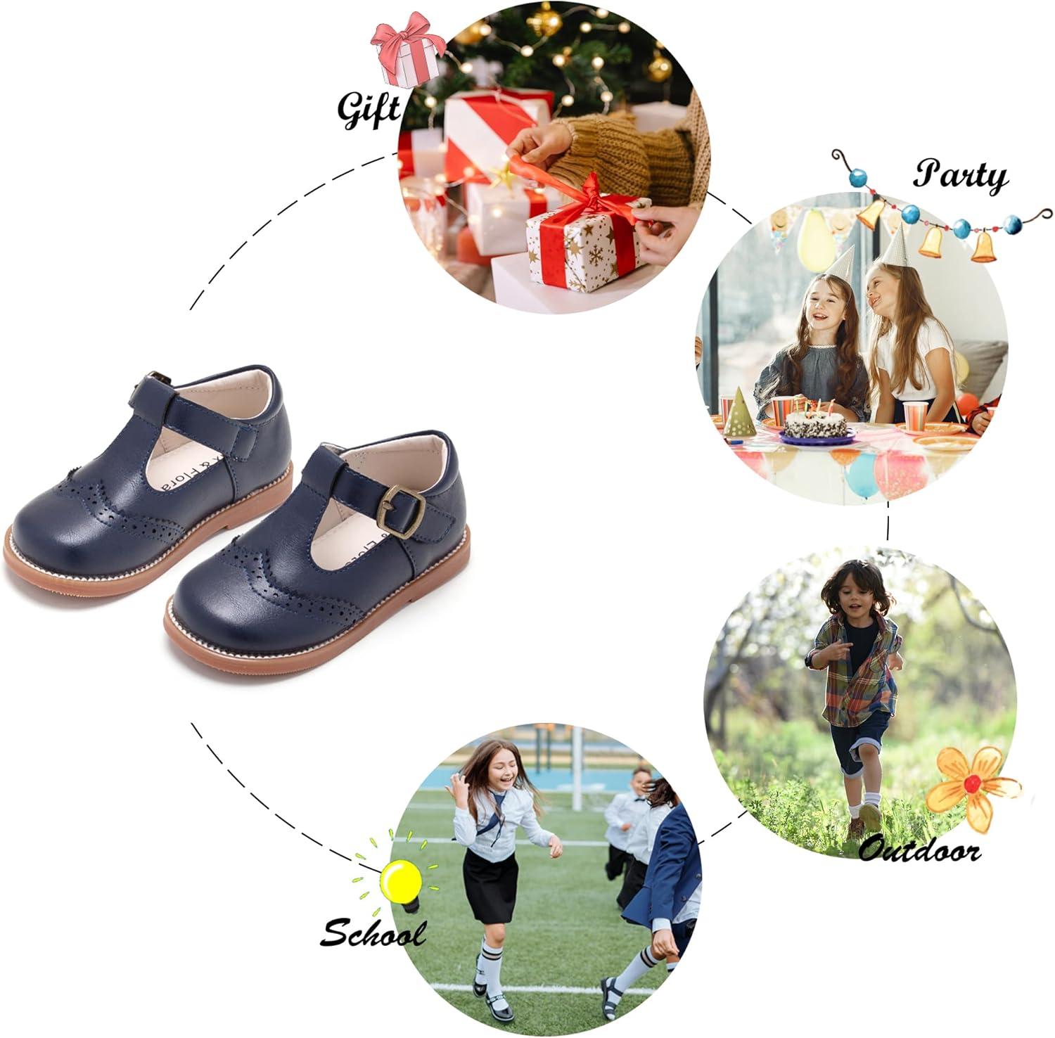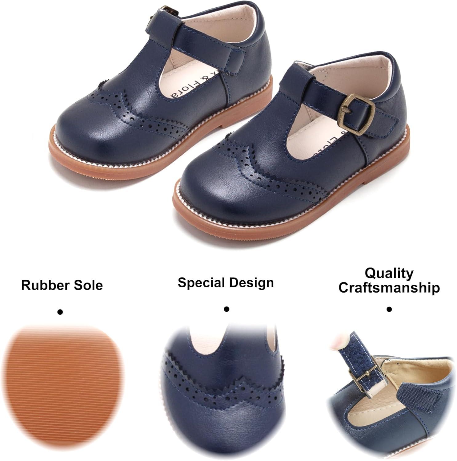 Felix & Flora Toddler Little Girl Mary Jane Dress Shoes – Ballet Flats for Girl Party School Shoes(B368-navy Blue)