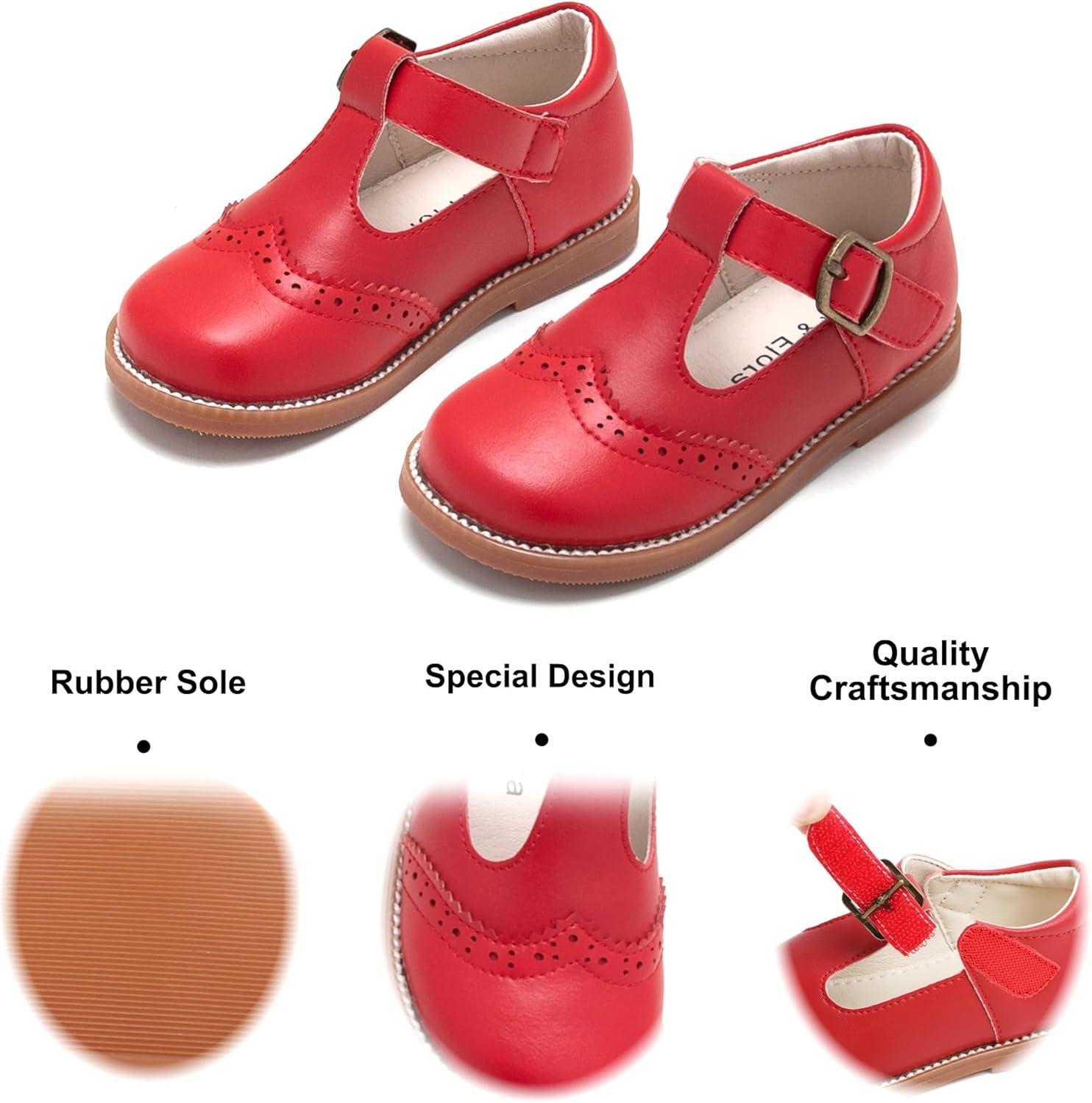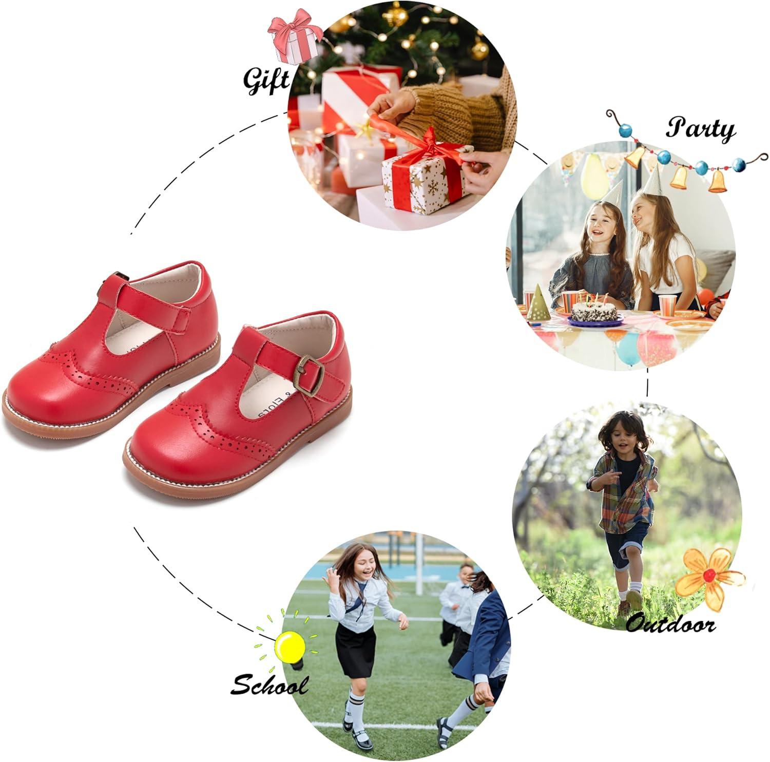 Felix & Flora Toddler Little Girl Mary Jane Dress Shoes – Ballet Flats for Girl Party School Shoes(B368-red)