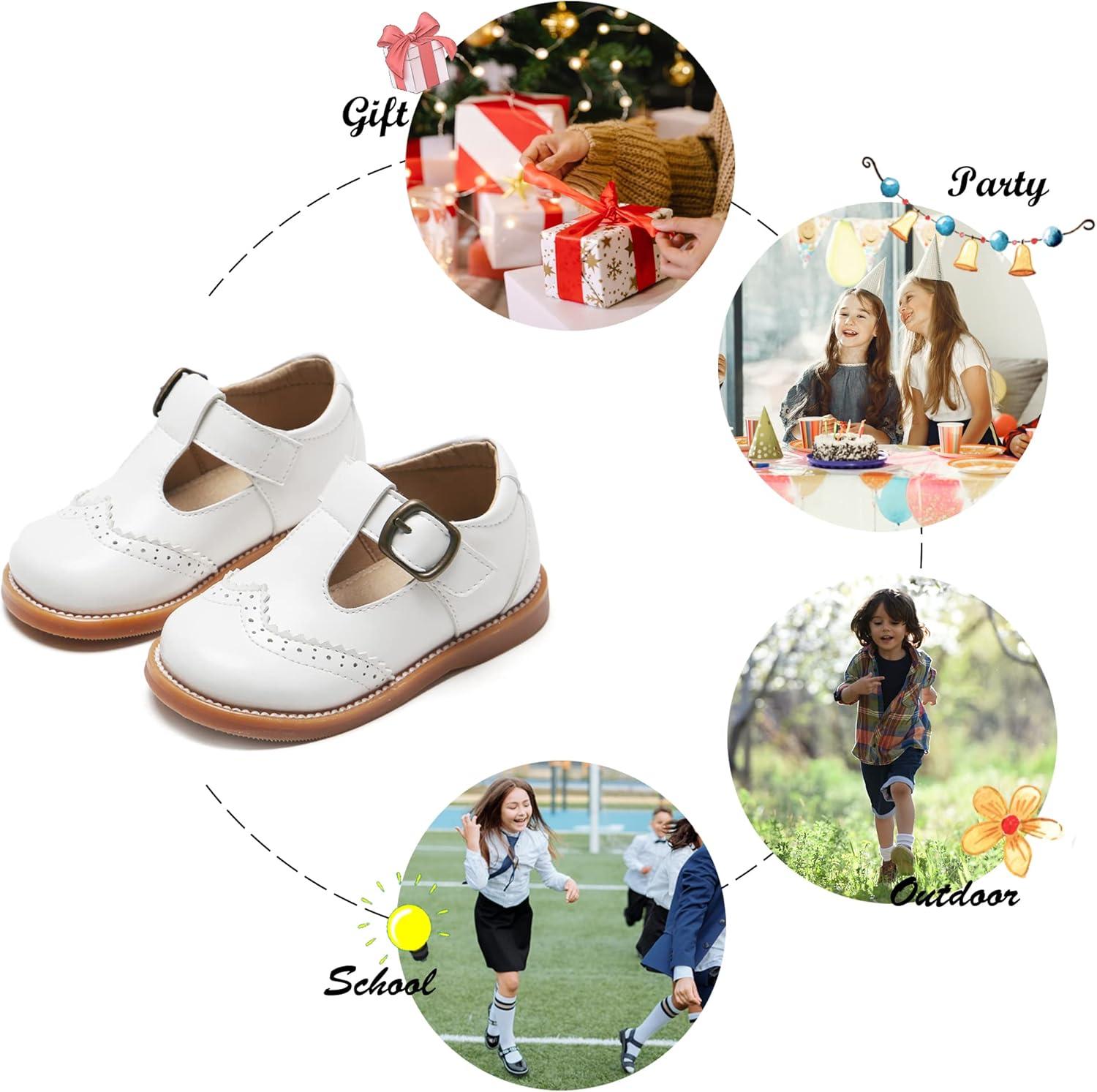 Felix & Flora Toddler Little Girl Mary Jane Dress Shoes – Ballet Flats for Girl Party School Shoes(B368-white)