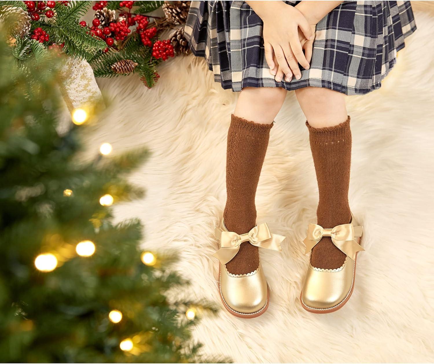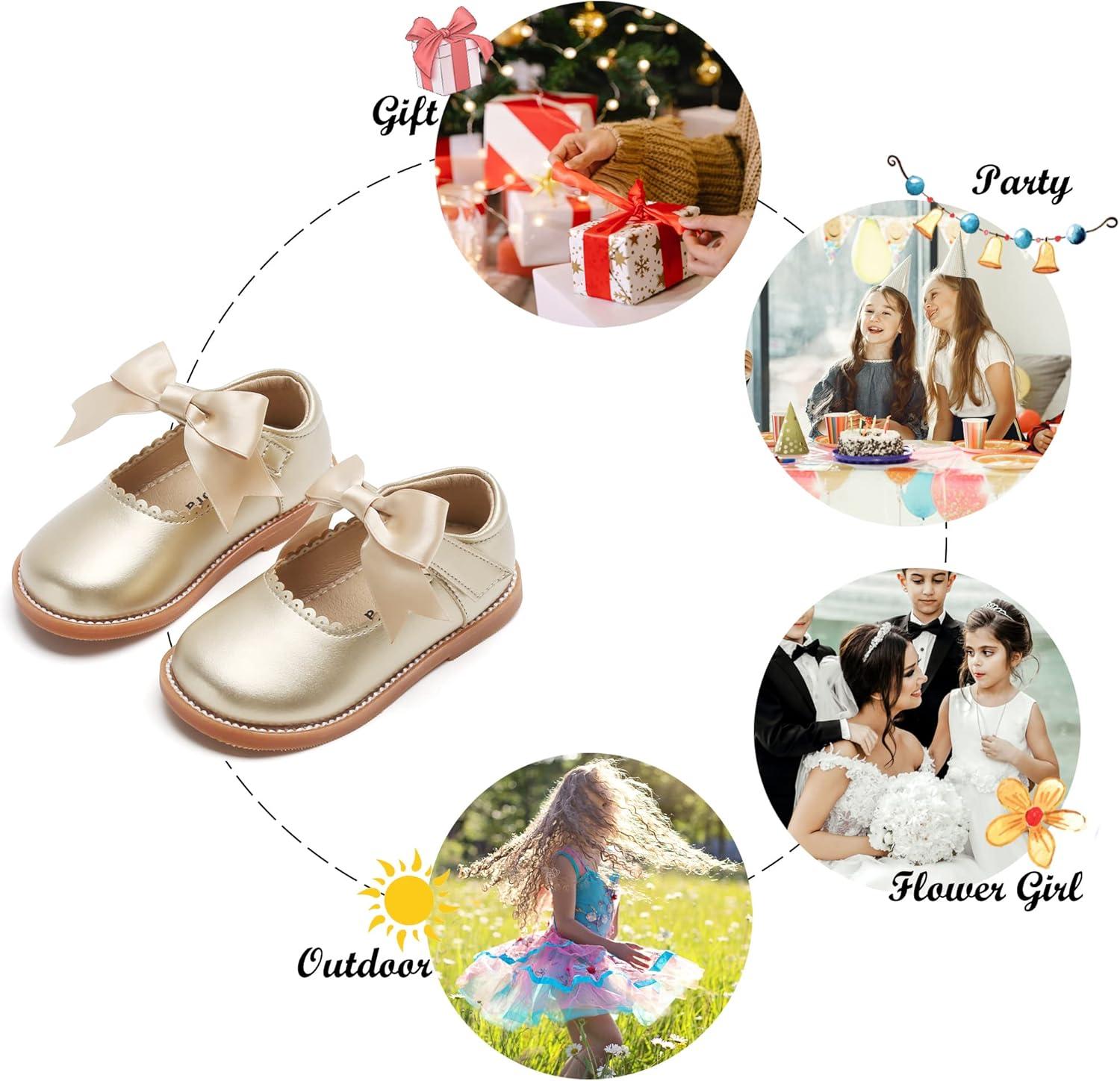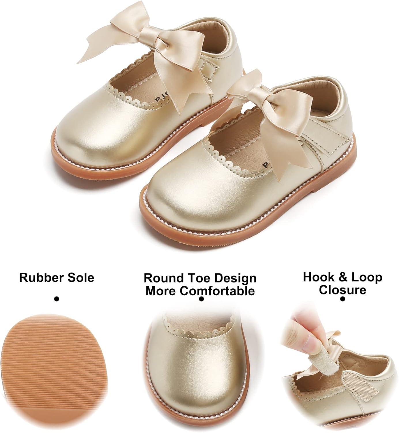 Felix & Flora Toddler Little Girl Mary Jane Dress Shoes – Ballet Flats for Girl Party School Shoes(B380-gold)