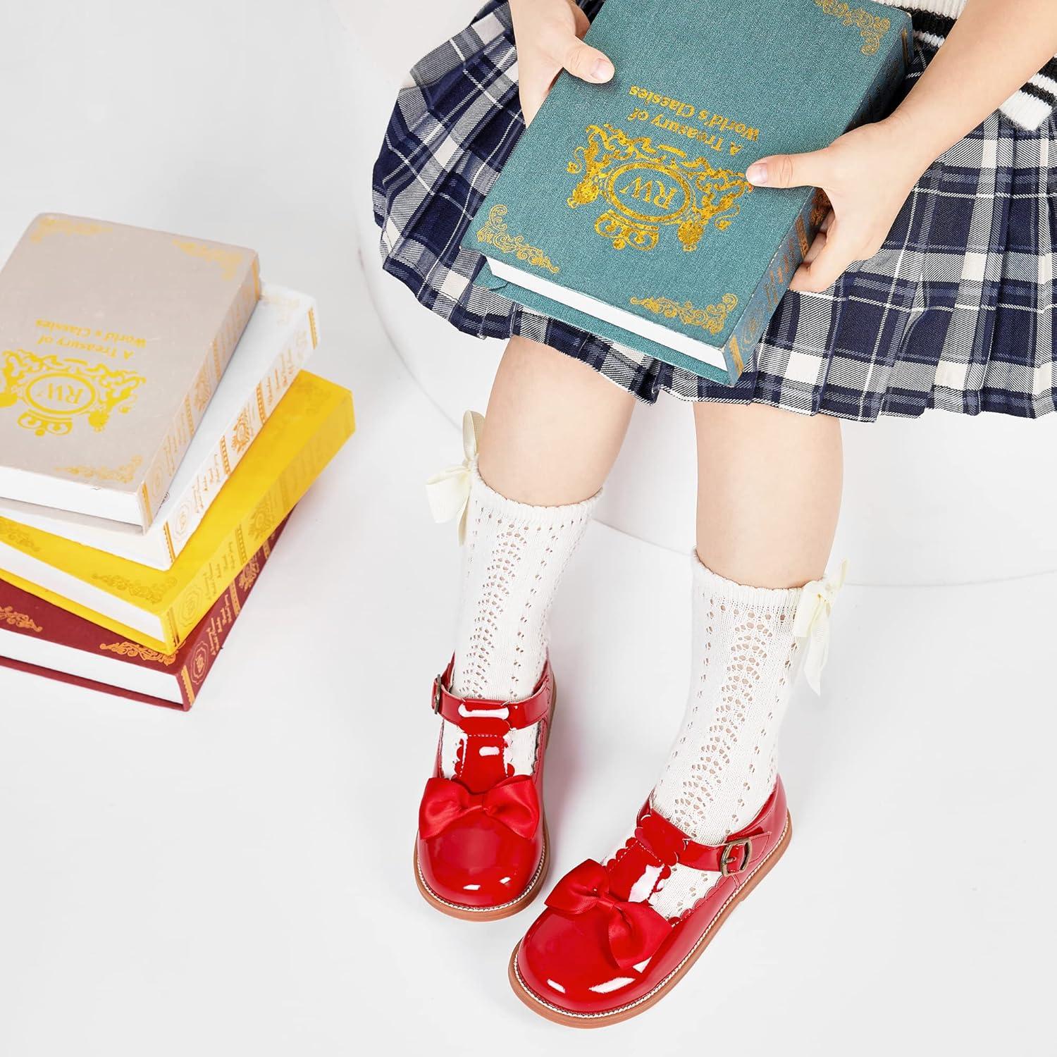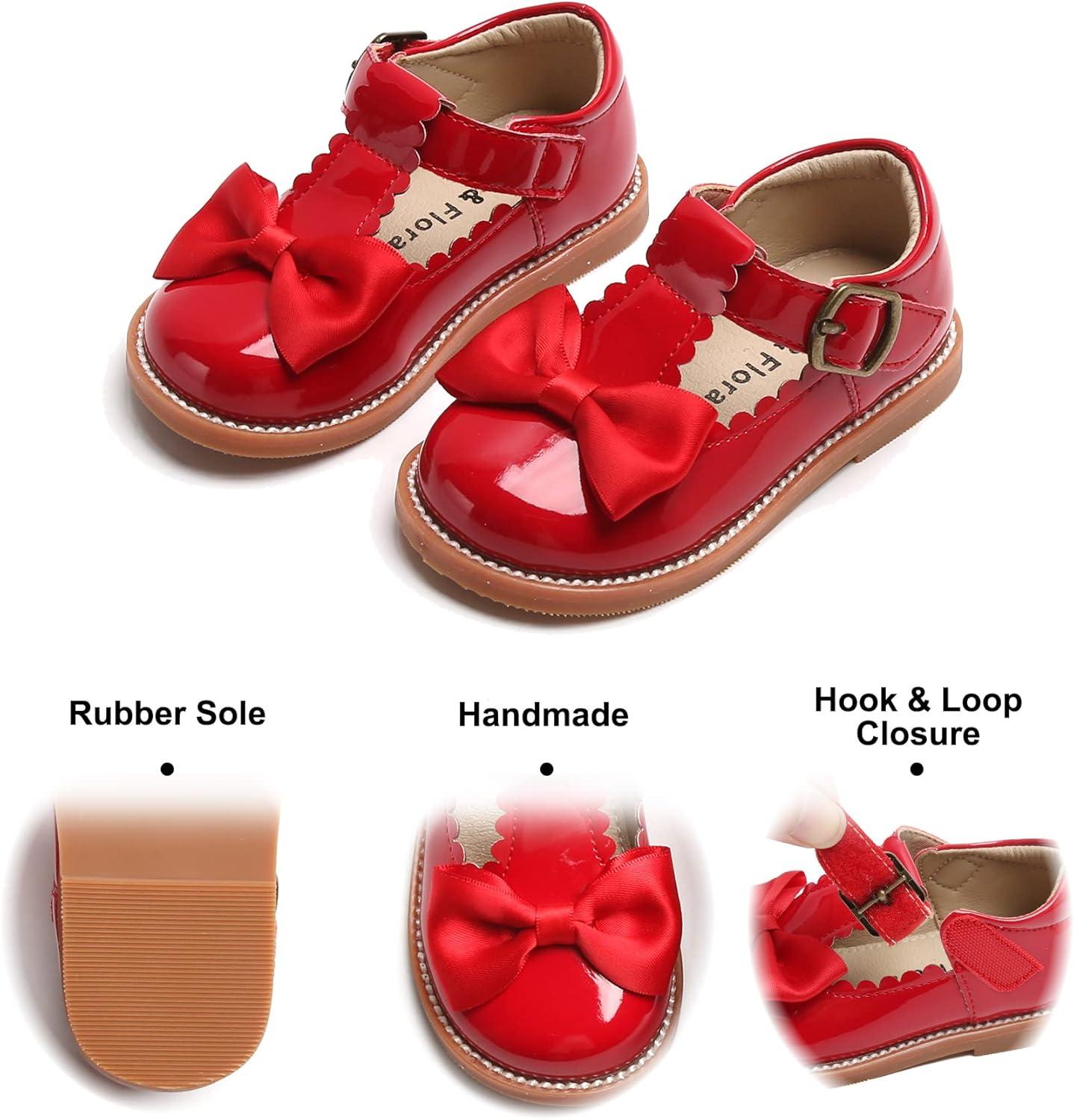 Felix & Flora Toddler Little Girl Mary Jane Dress Shoes – Ballet Flats for Girl Party School Shoes(B399-red)