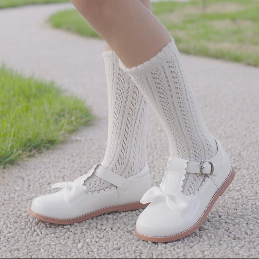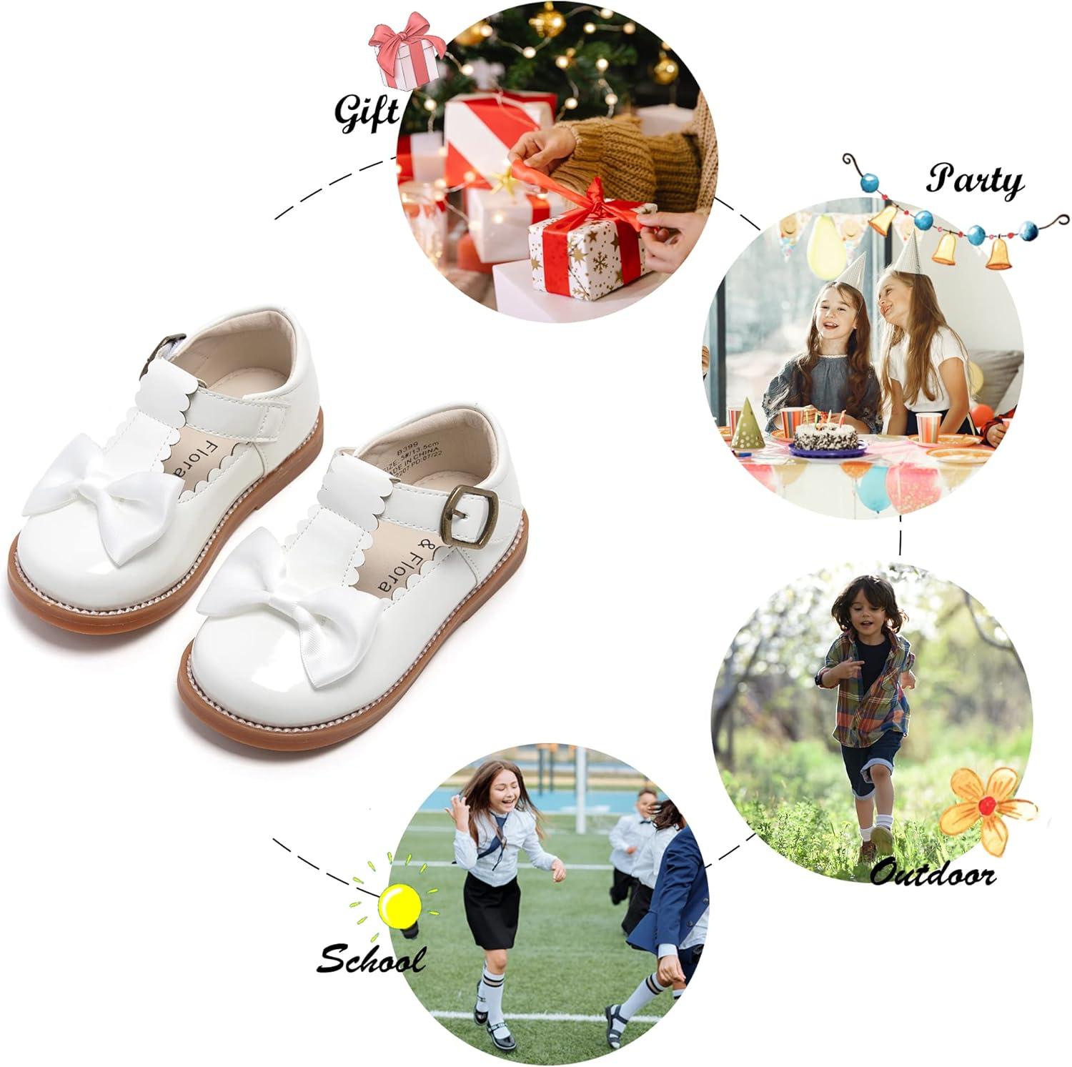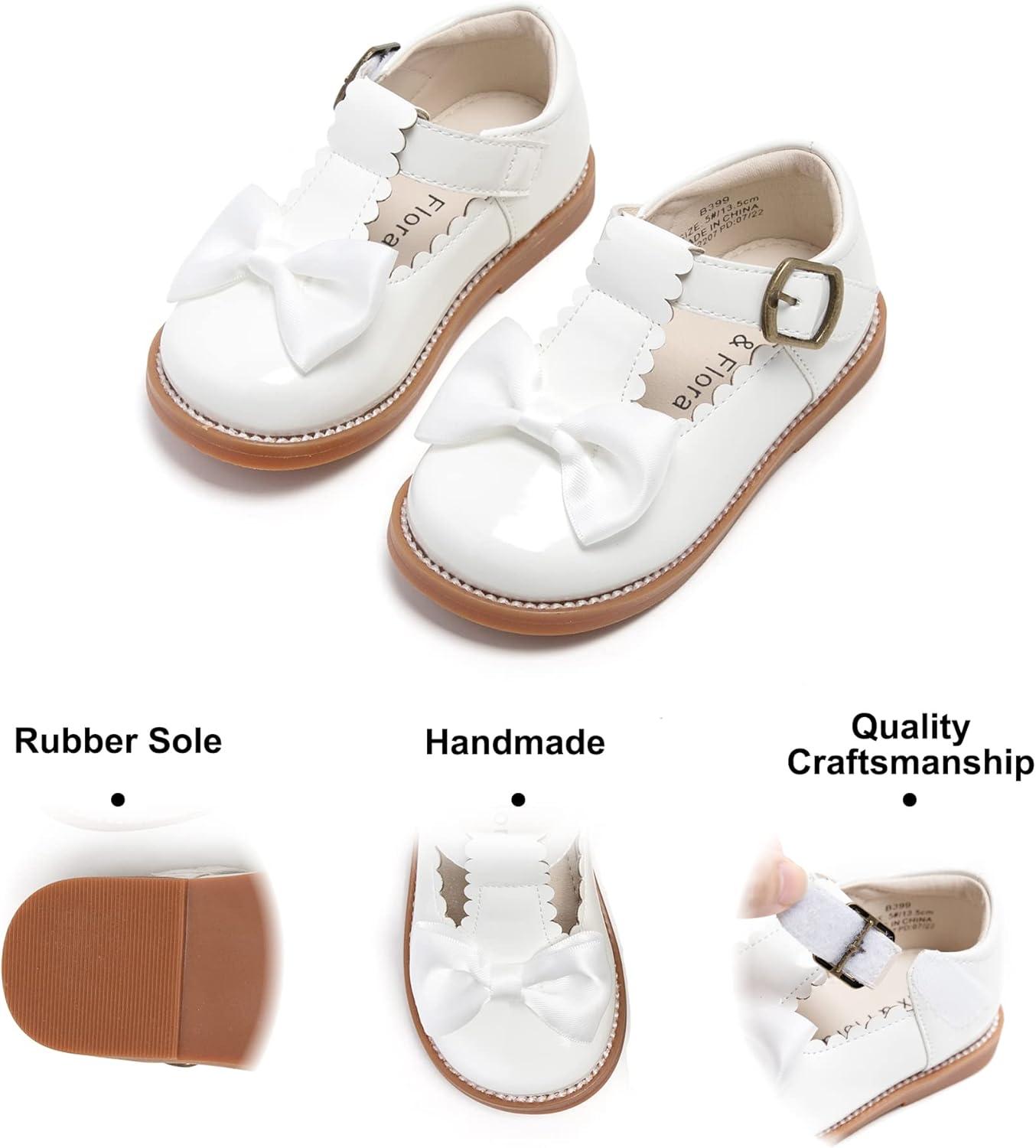 Felix & Flora Toddler Little Girl Mary Jane Dress Shoes – Ballet Flats for Girl Party School Shoes(B399-white)