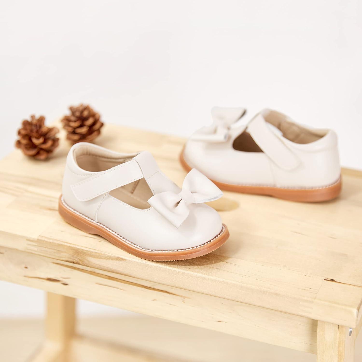 Felix & Flora Toddler Little Girl Mary Jane Dress Shoes – Ballet Flats for Girl Party School Shoes(B400-beige)