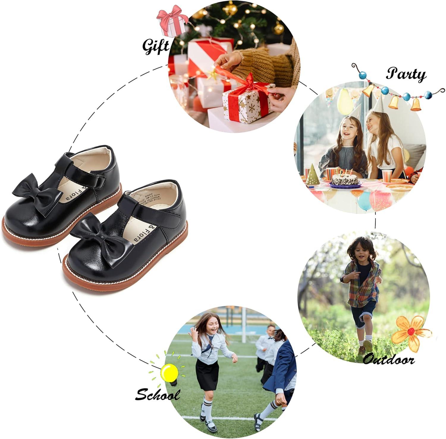 Felix & Flora Toddler Little Girl Mary Jane Dress Shoes – Ballet Flats for Girl Party School Shoes(B400-black)