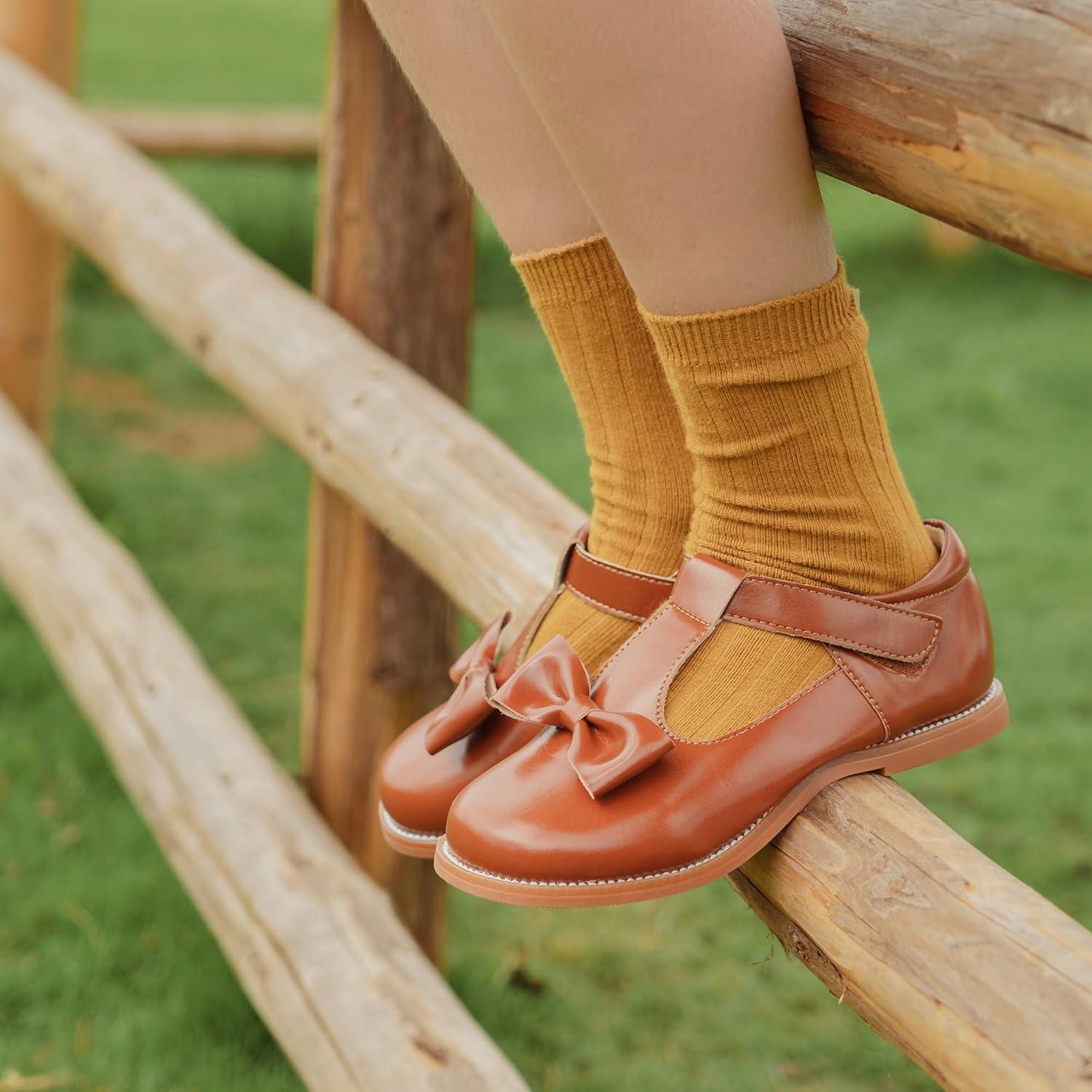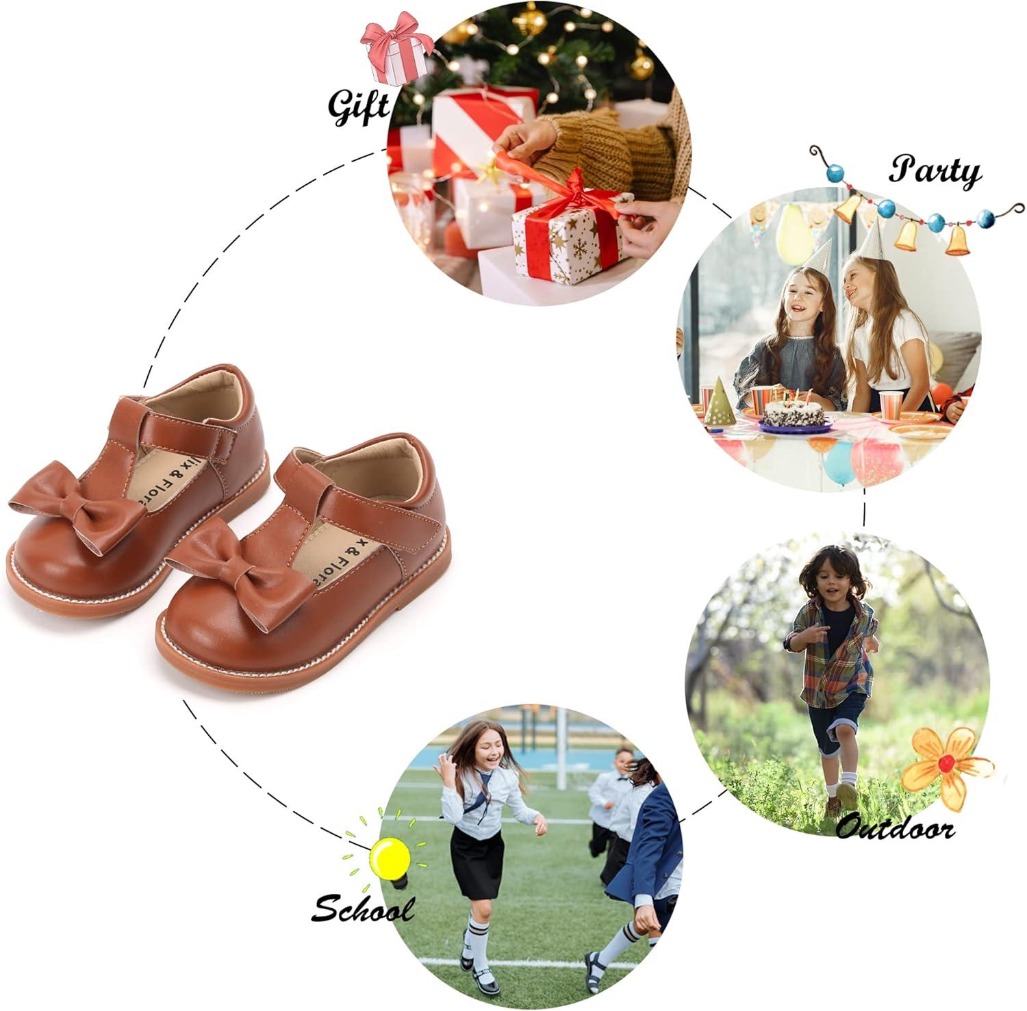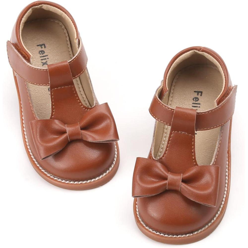 Felix & Flora Toddler Little Girl Mary Jane Dress Shoes – Ballet Flats for Girl Party School Shoes(B400-brown)