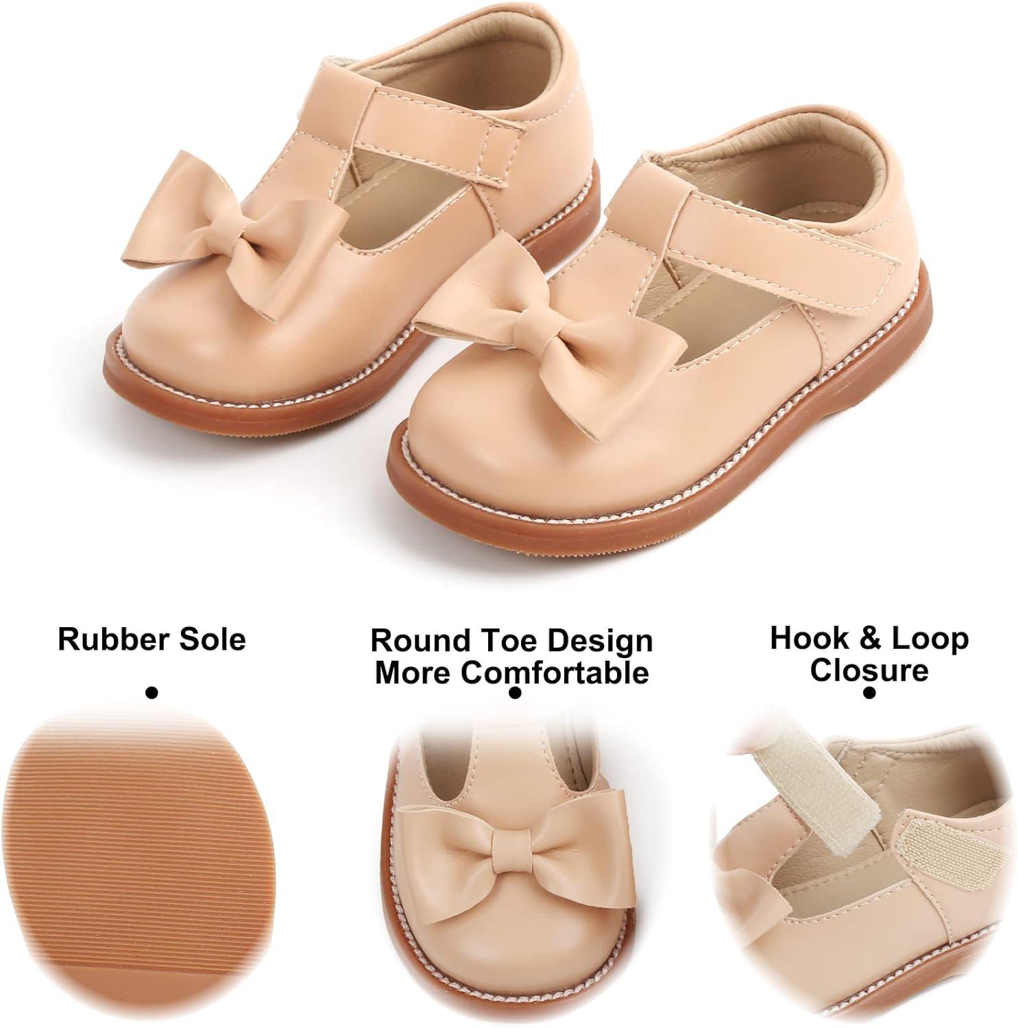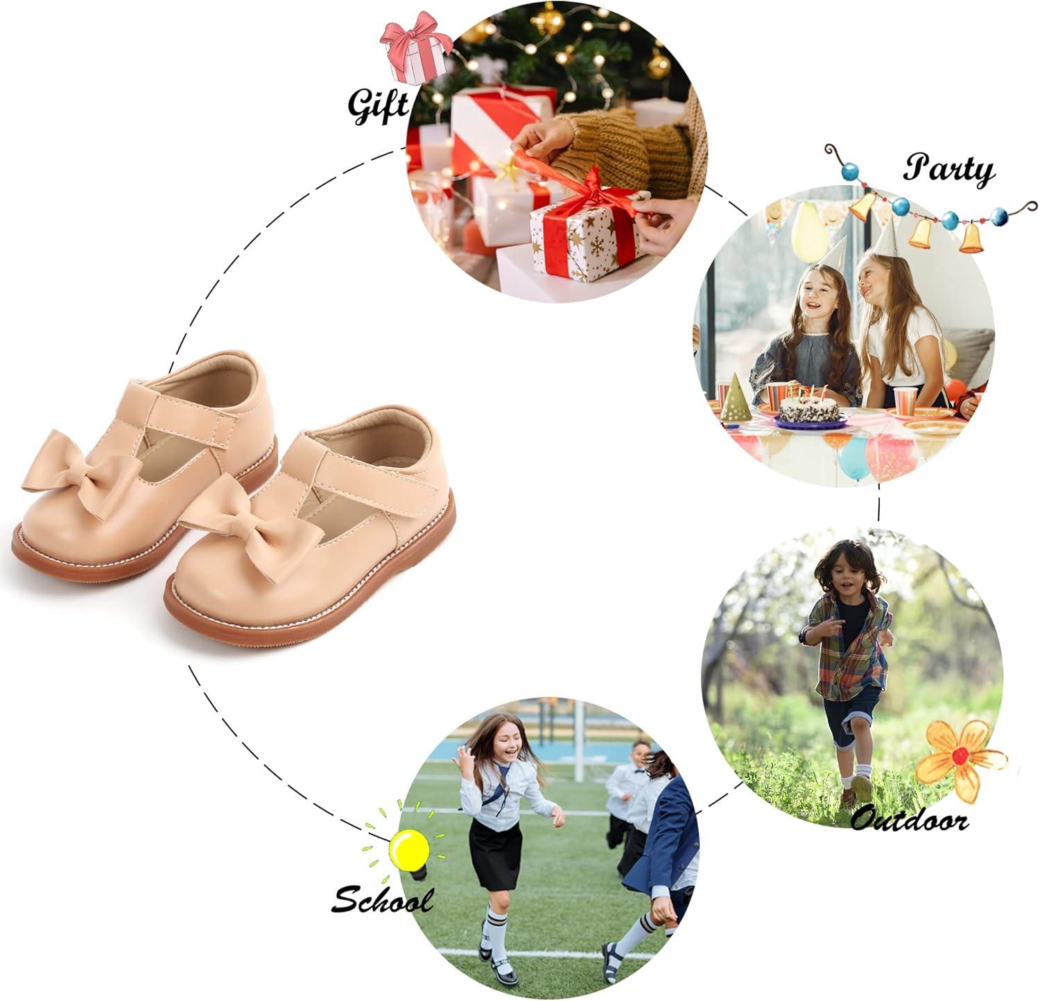 Felix & Flora Toddler Little Girl Mary Jane Dress Shoes – Ballet Flats for Girl Party School Shoes(B400-nude)