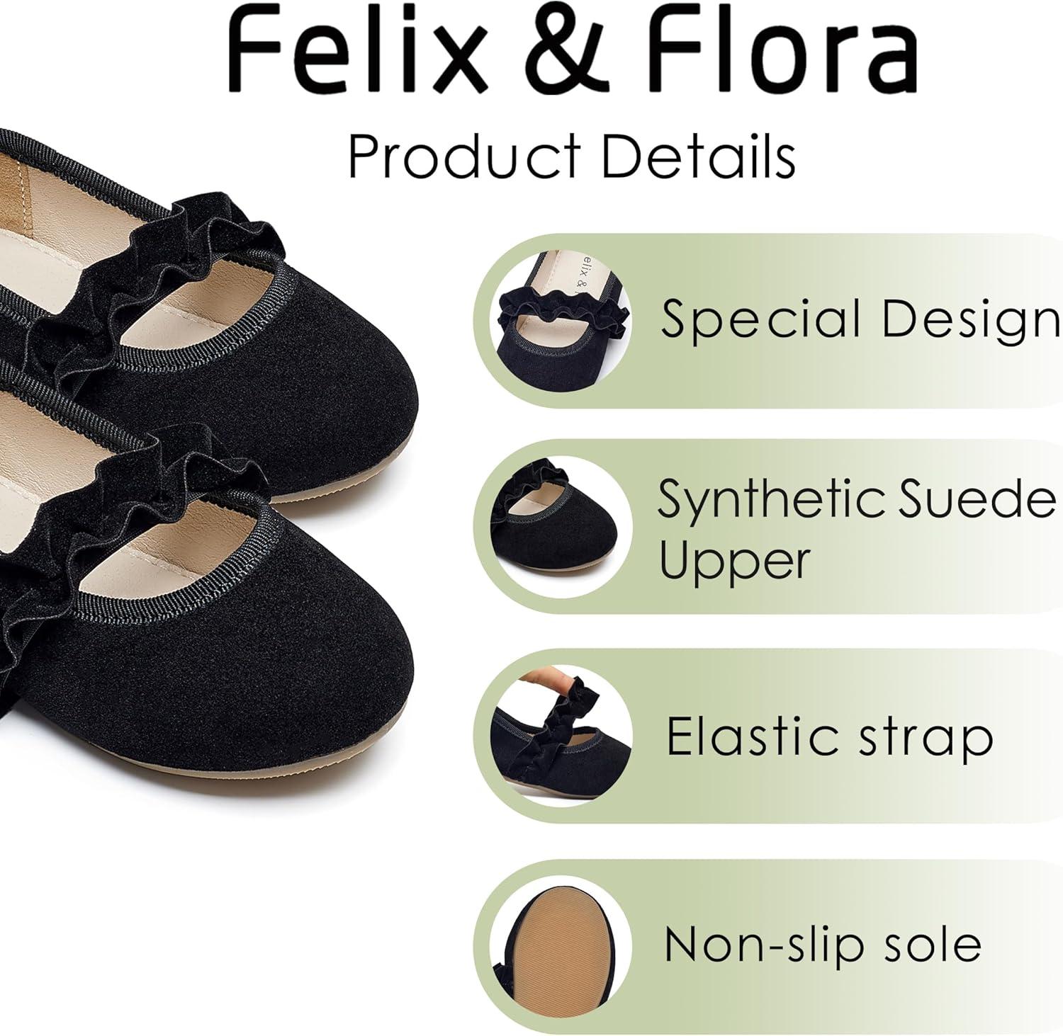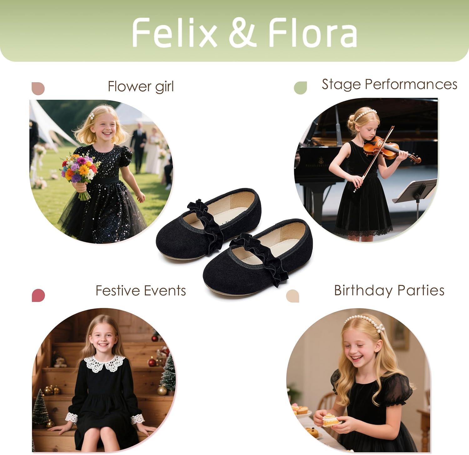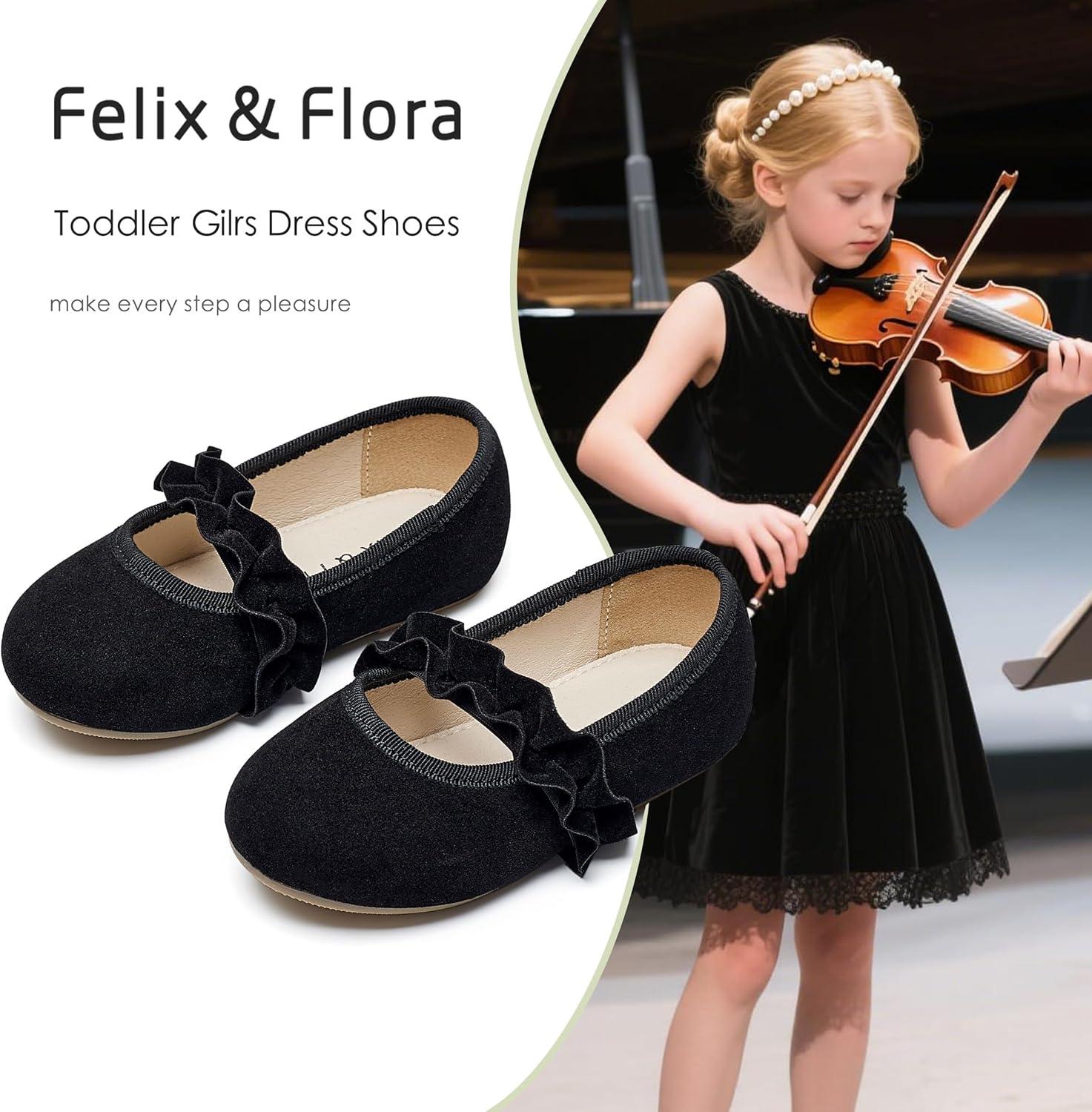 Felix & Flora Toddler Little Girls Dress Shoes – Flower Girls Mary Jane Flats Ballet Shoes Party Wedding(Bf22-black)