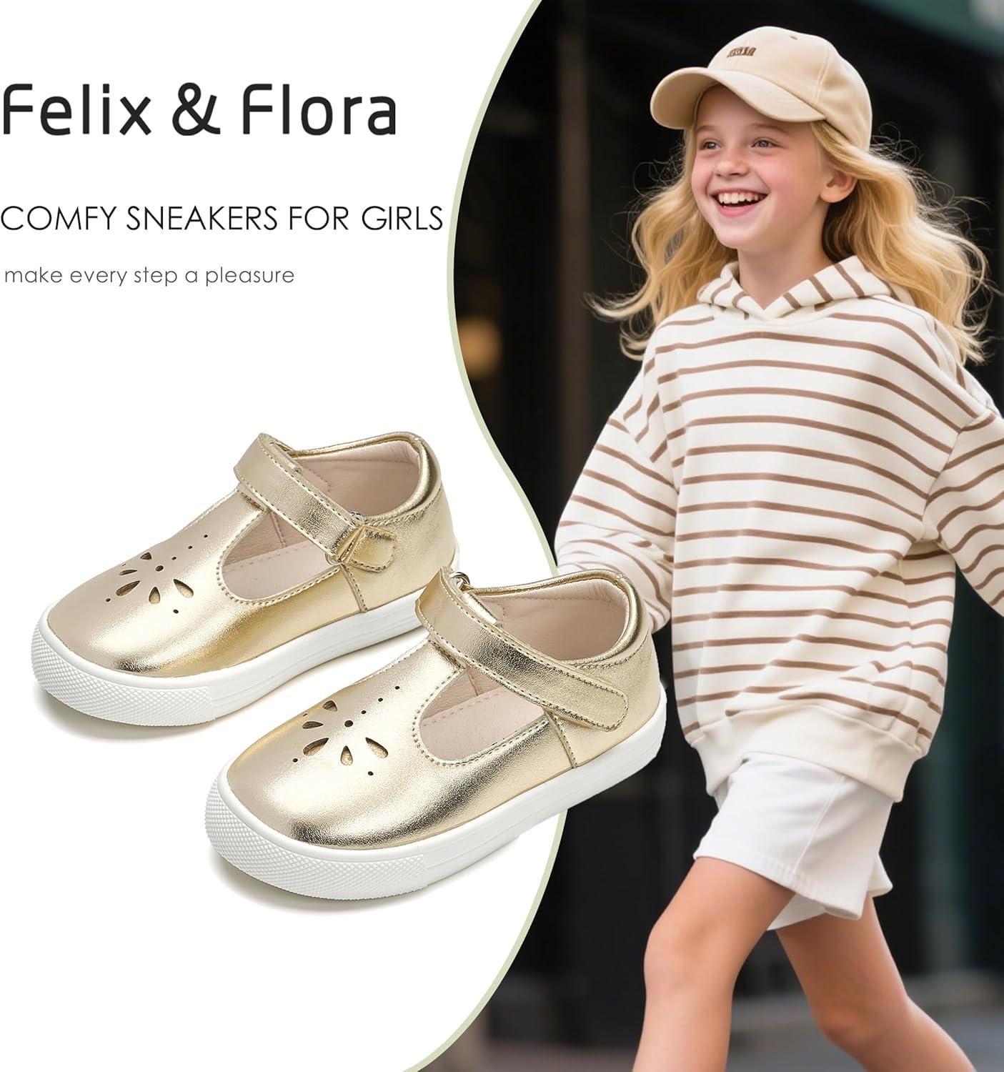 Felix & Flora Toddler/Little Kid Girls Running Shoes Glitter Sneakers Princess Fashion Casual Sports Shoes(Bs829-bright Gold)