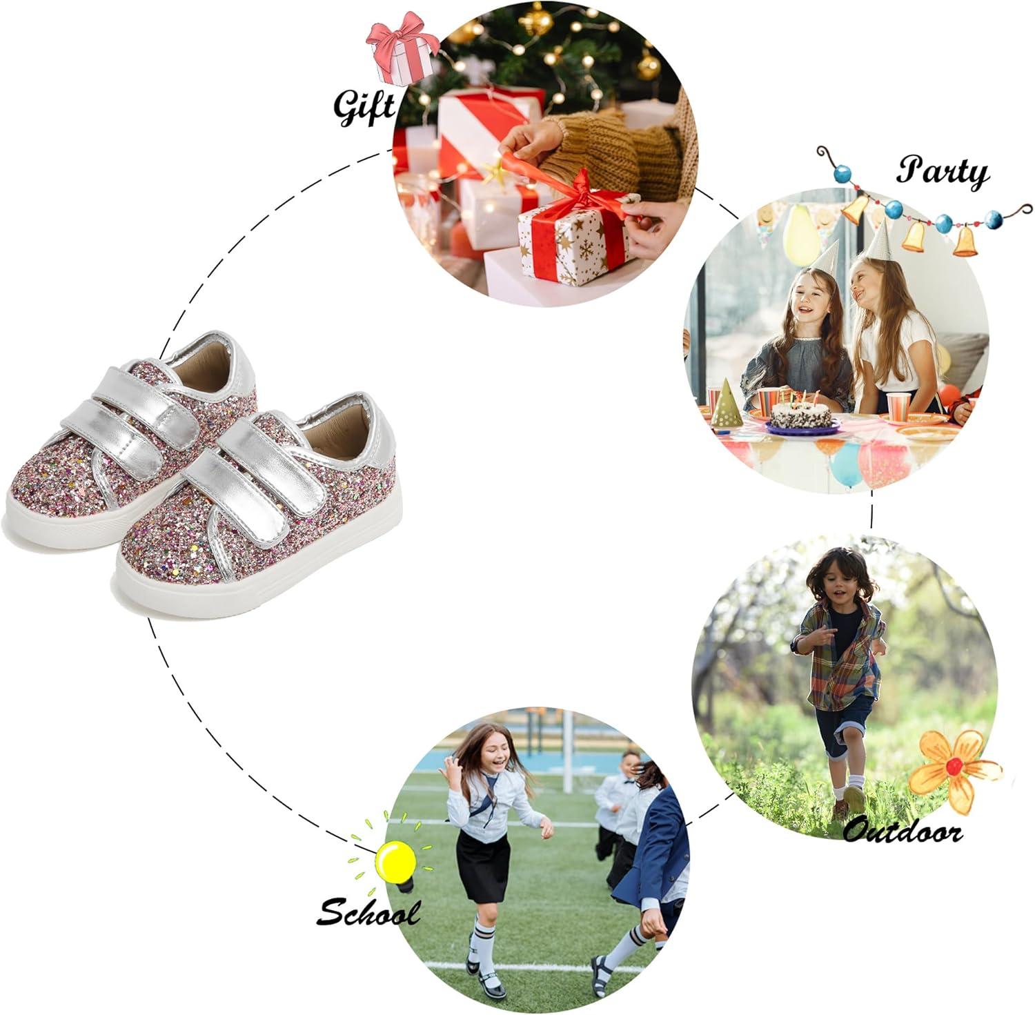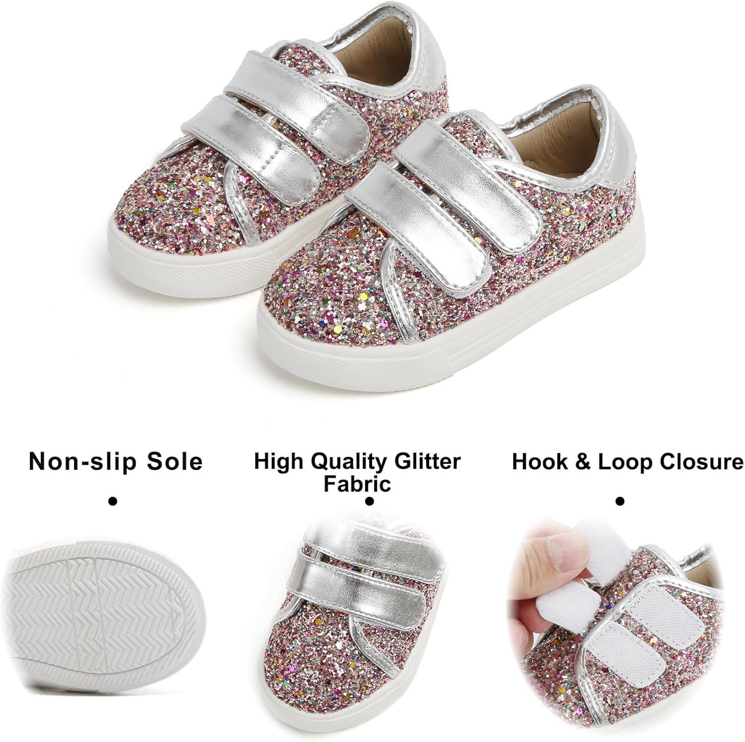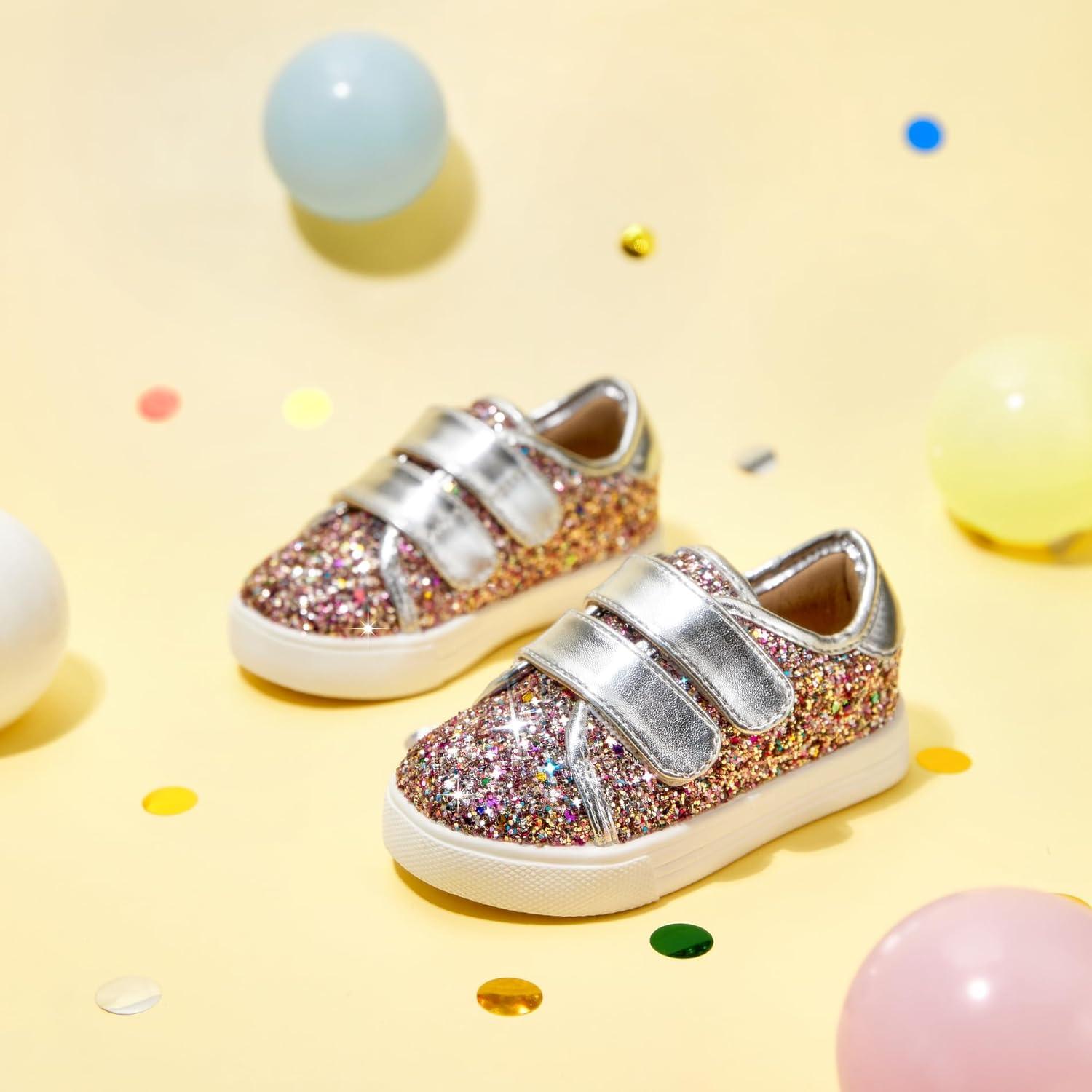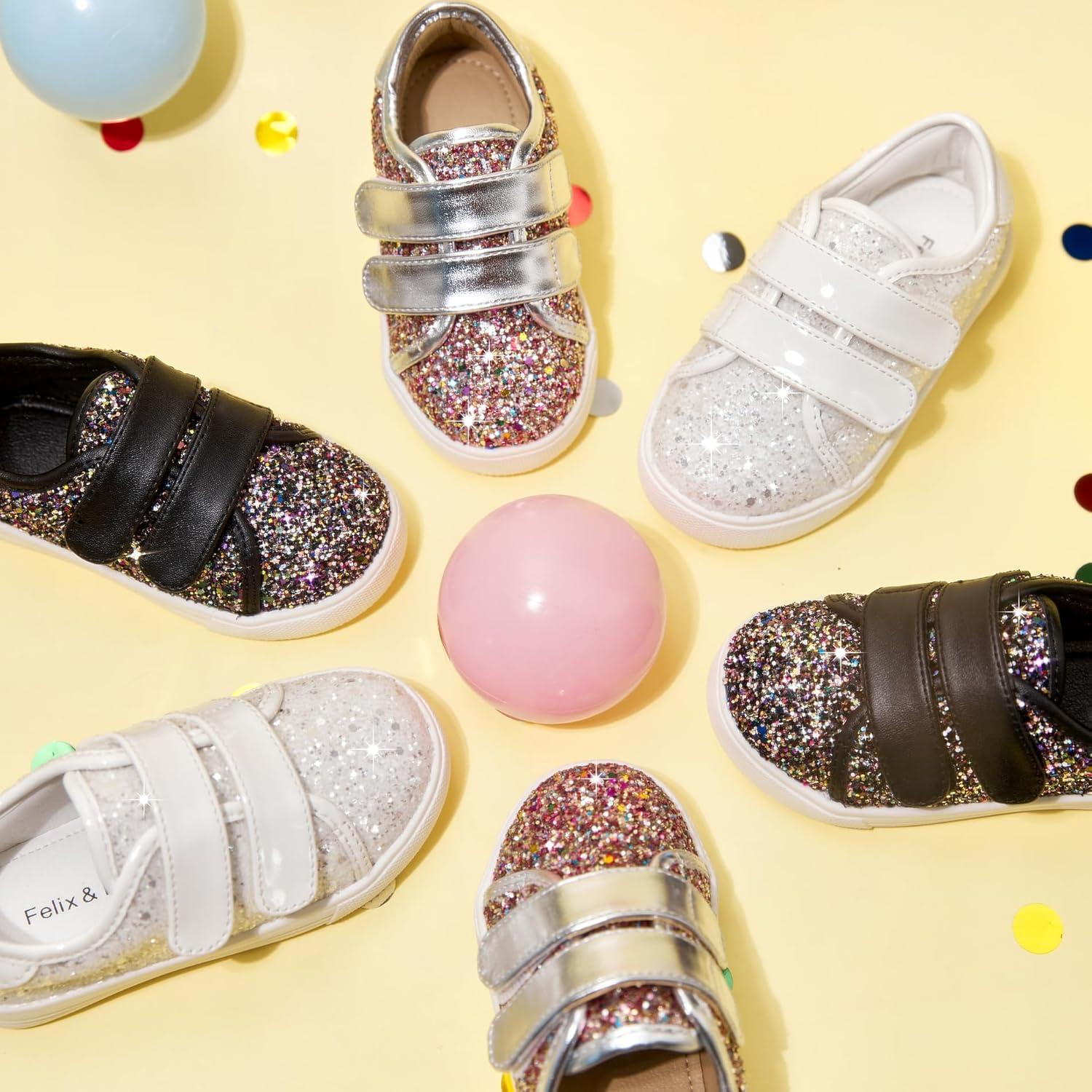 Felix & Flora Toddler/Little Kid Girls Running Shoes Sports Sneakers Princess Casual Glitter Shoes.(Bs808-multicolor)