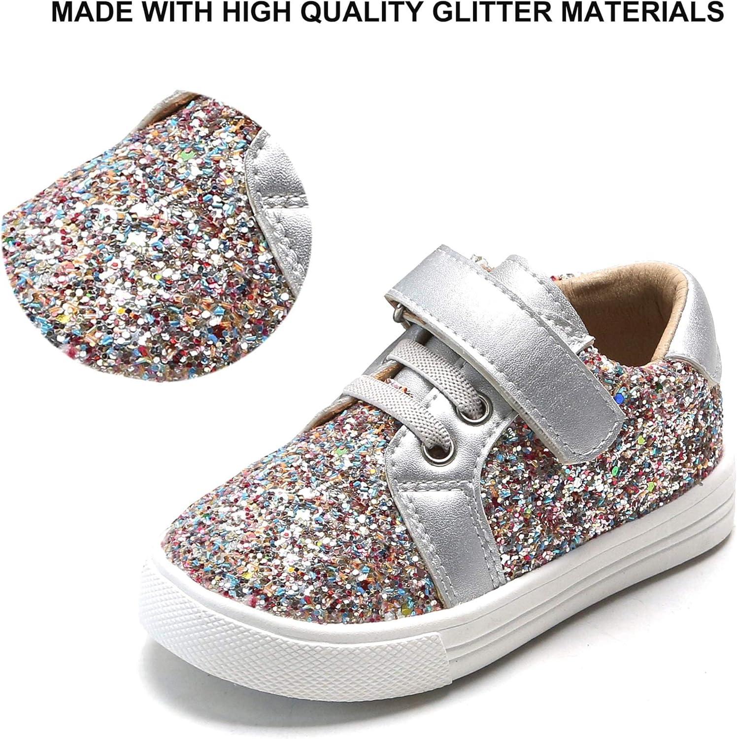 Felix & Flora Toddler/Little Kid Girls Running Shoes Sports Sneakers Princess Casual Glitter Shoes.(Bs815-multicolor)
