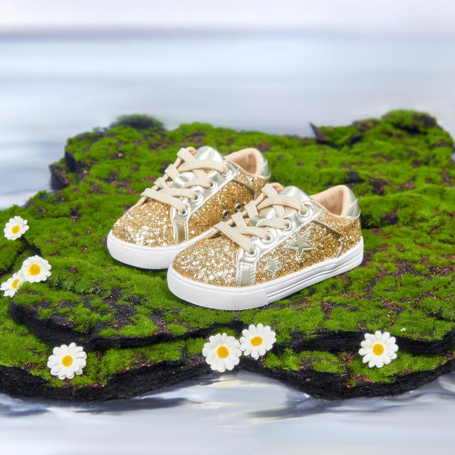 Felix & Flora Toddler/Little Kid Girls Running Shoes Sports Sneakers Princess Casual Glitter Shoes.(Bs818-gold)