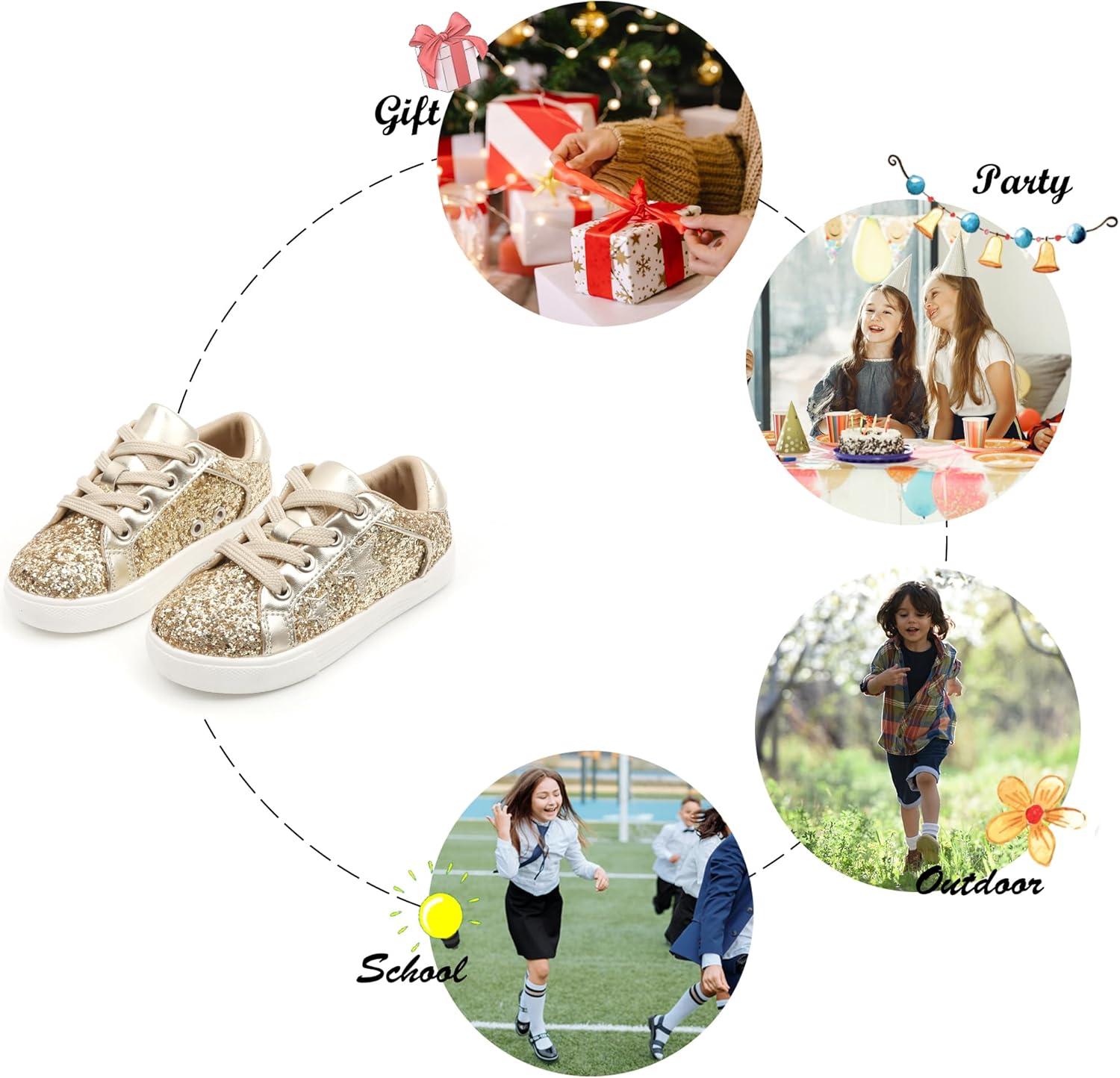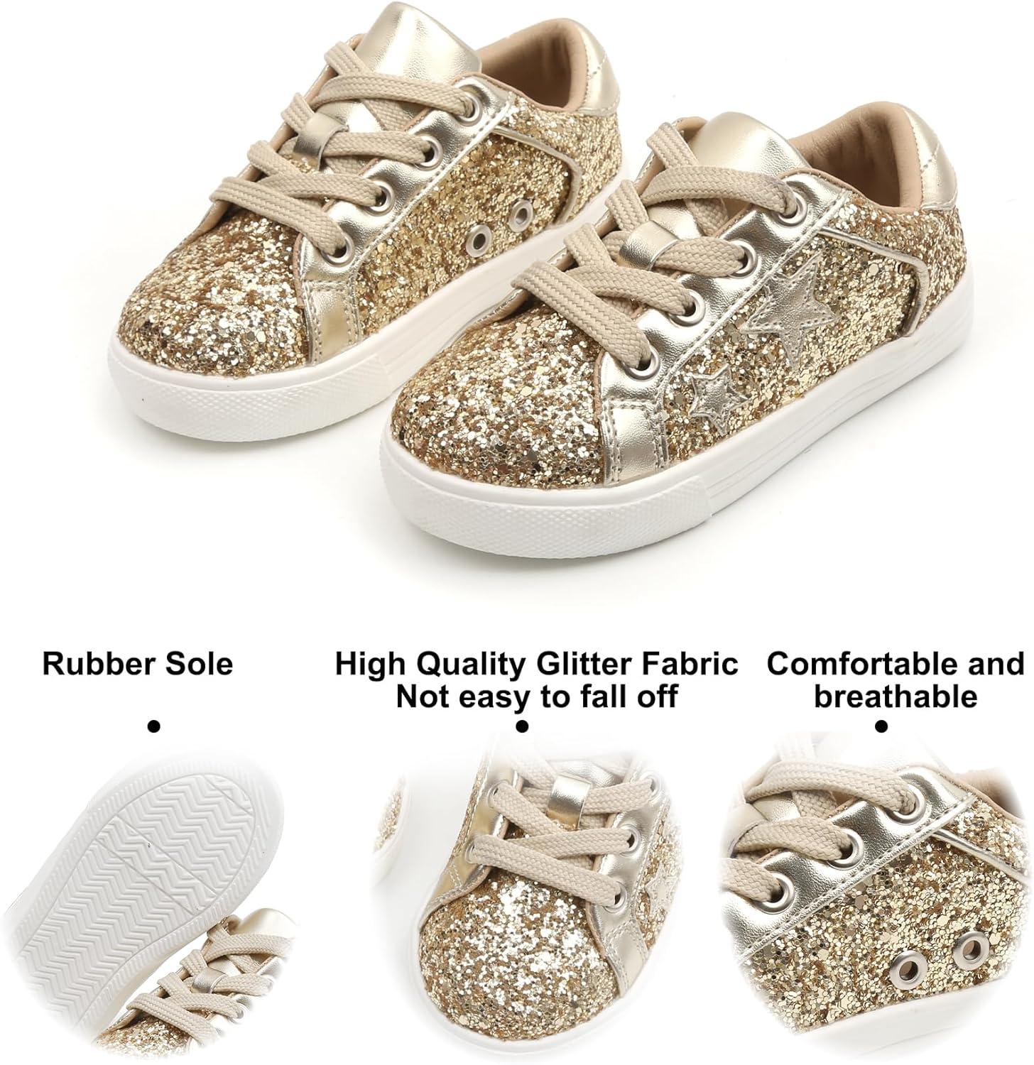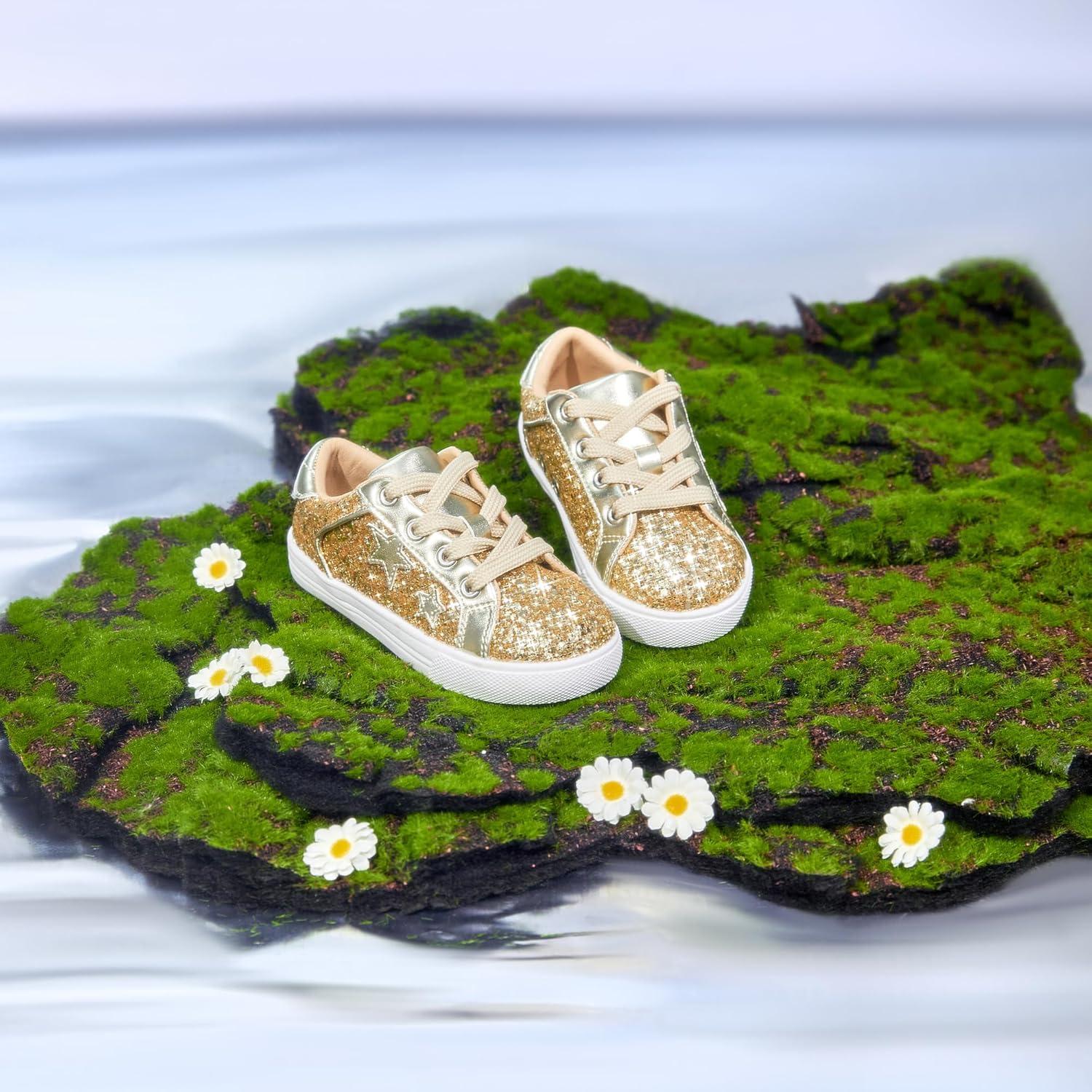 Felix & Flora Toddler/Little Kid Girls Running Shoes Sports Sneakers Princess Casual Glitter Shoes.(Bs819-glitter Gold)
