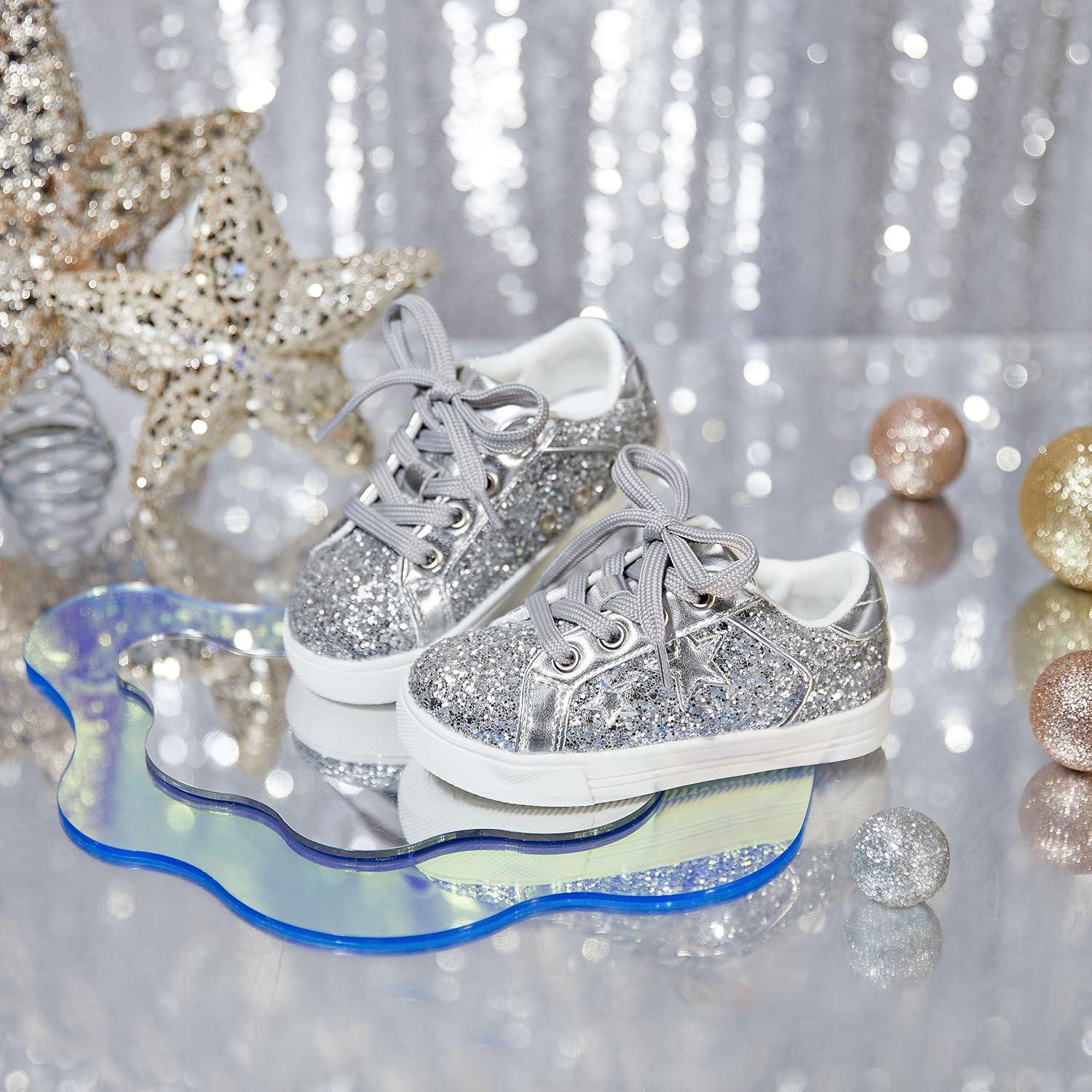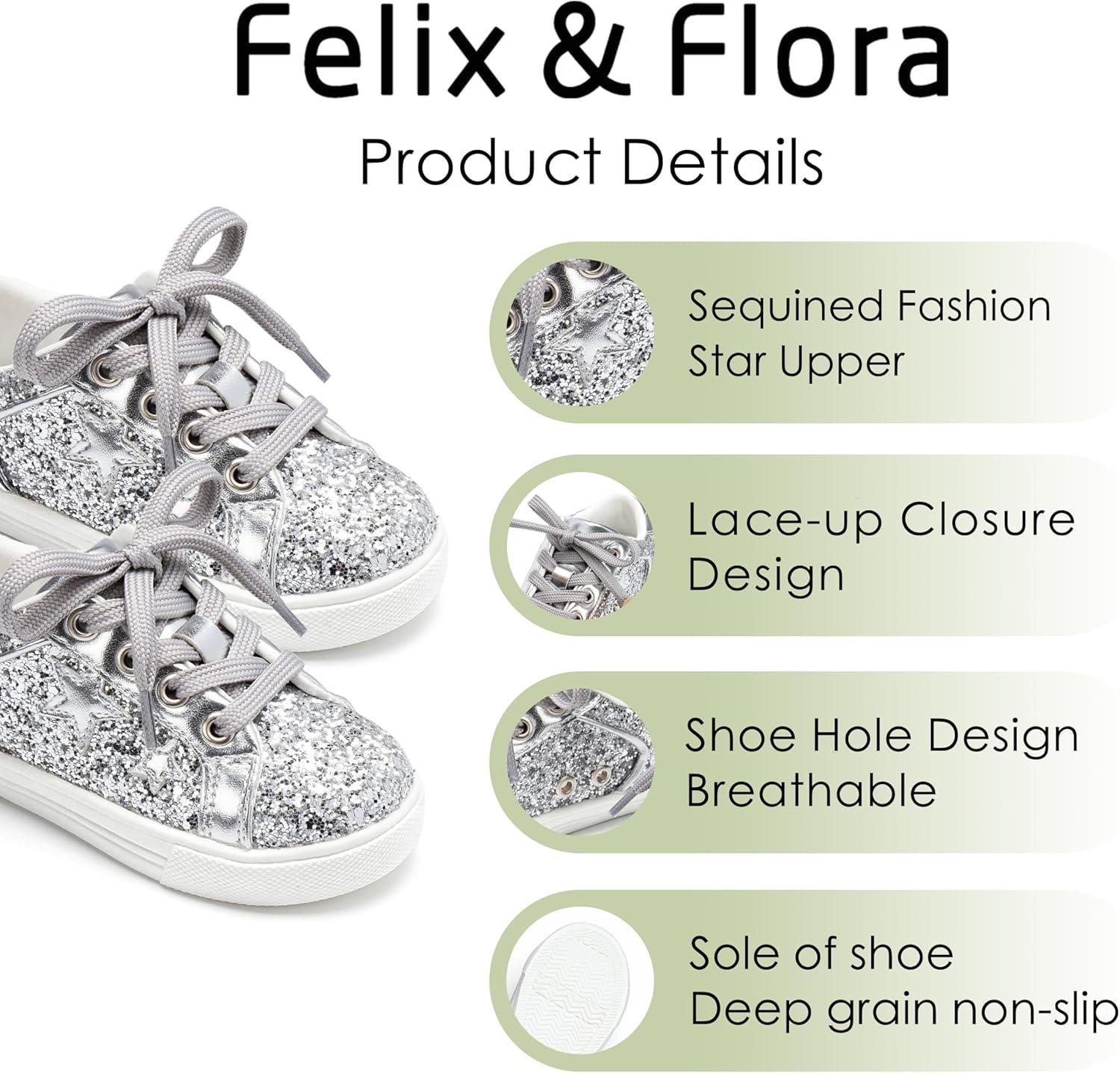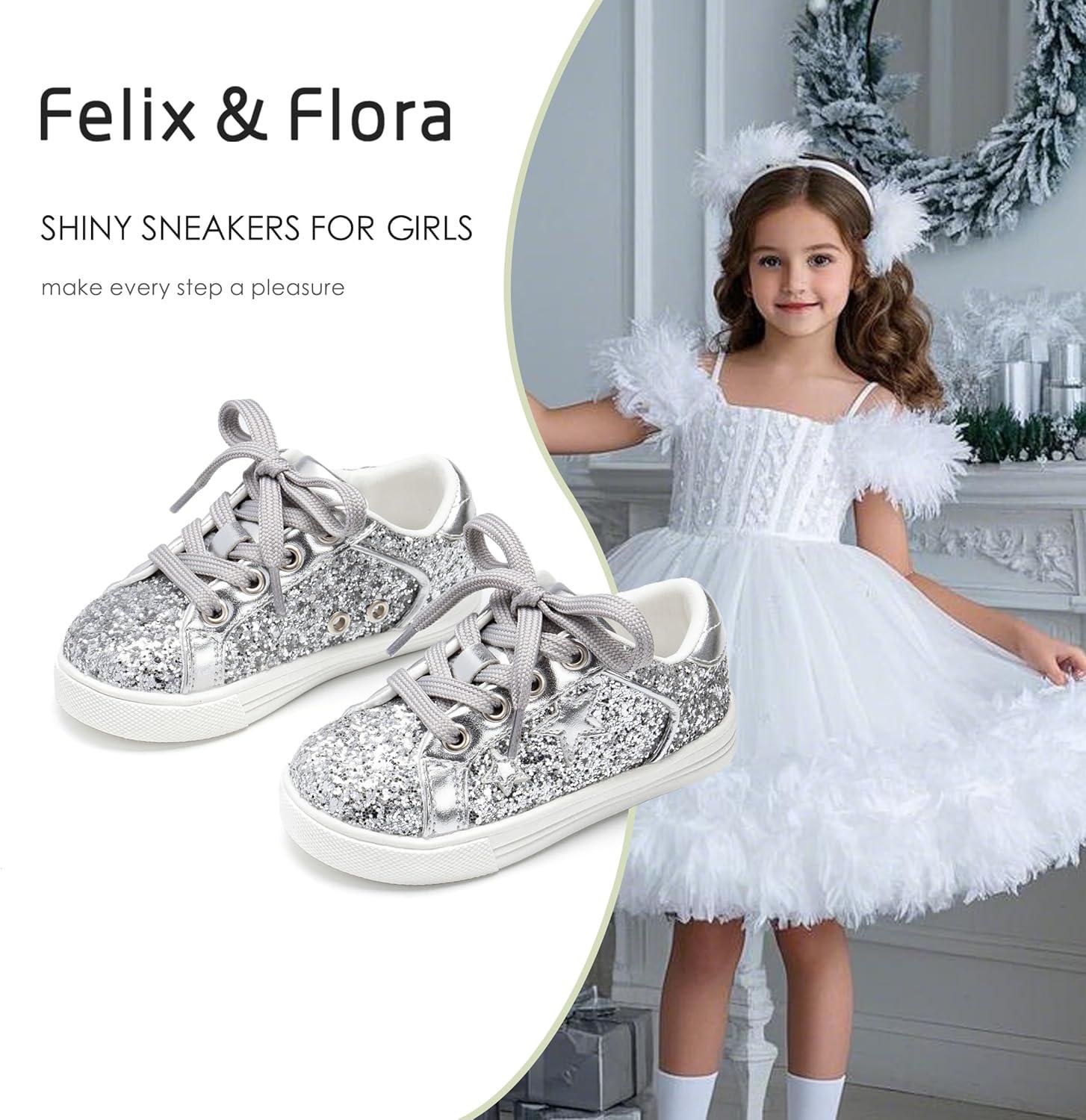 Felix & Flora Toddler/Little Kid Girls Running Shoes Sports Sneakers Princess Casual Glitter Shoes.(Bs819-glitter Silver)