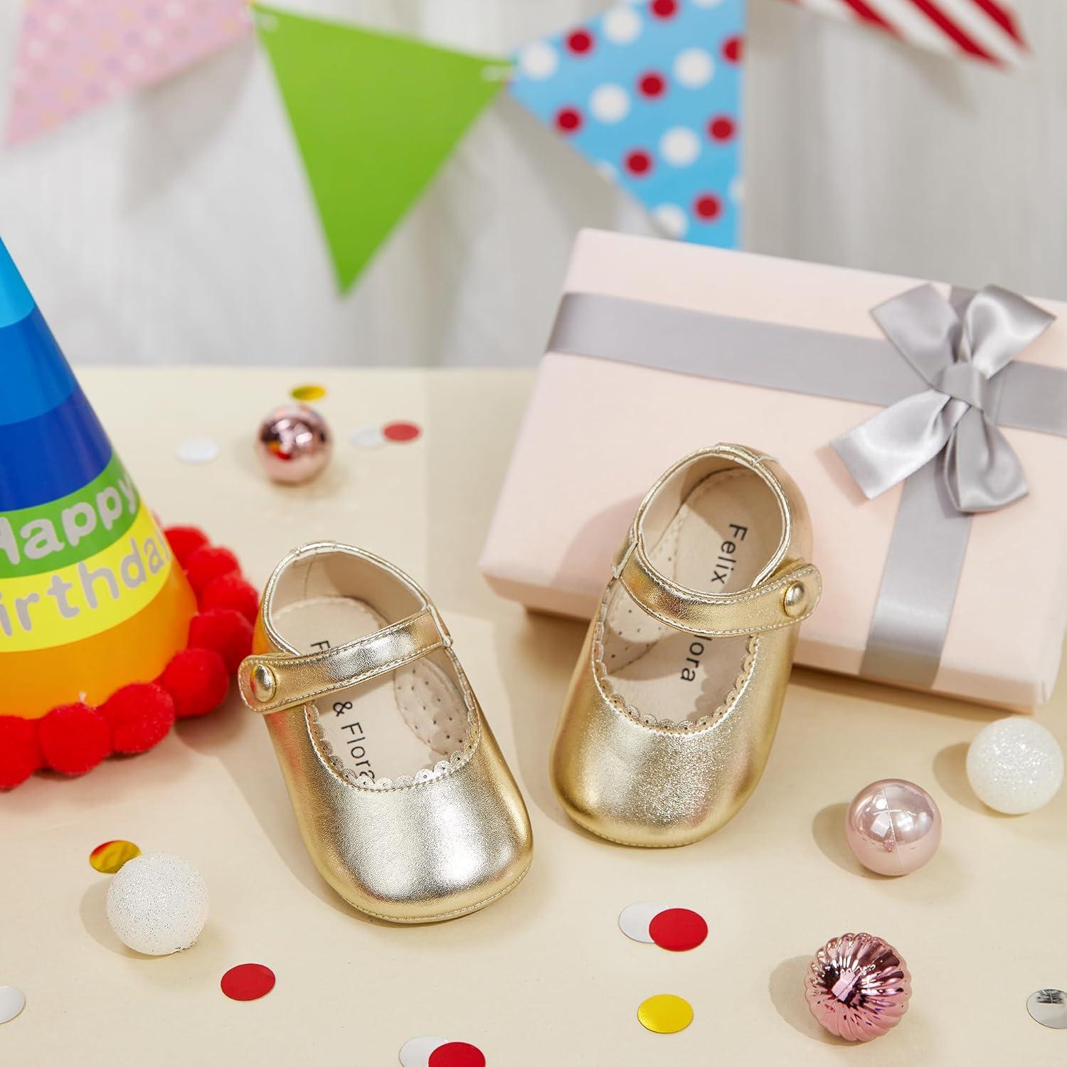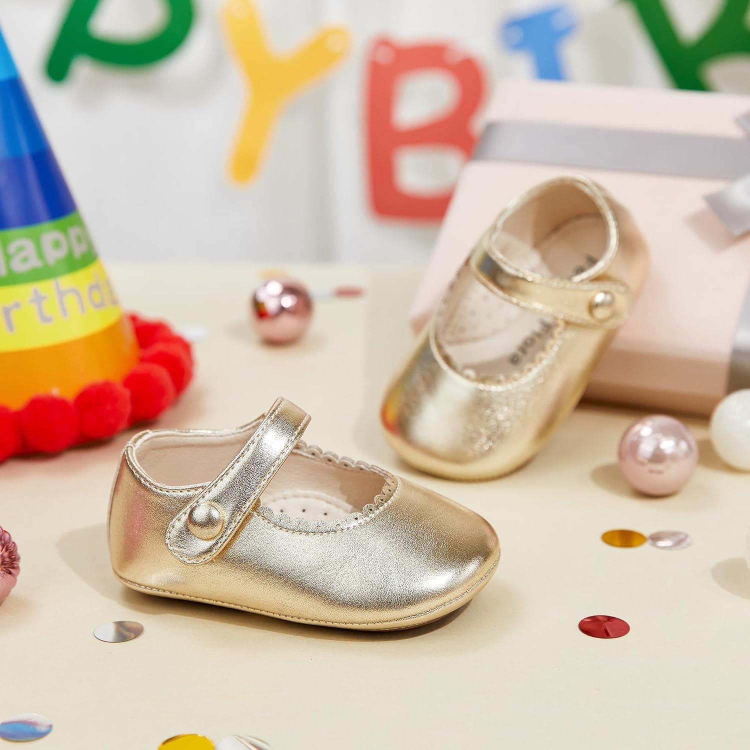Soft Sole Baby Dress Shoes – Infant Baby Walking Shoes Moccasinss Rubber Sole Crib Shoes(B8725-bright Gold)