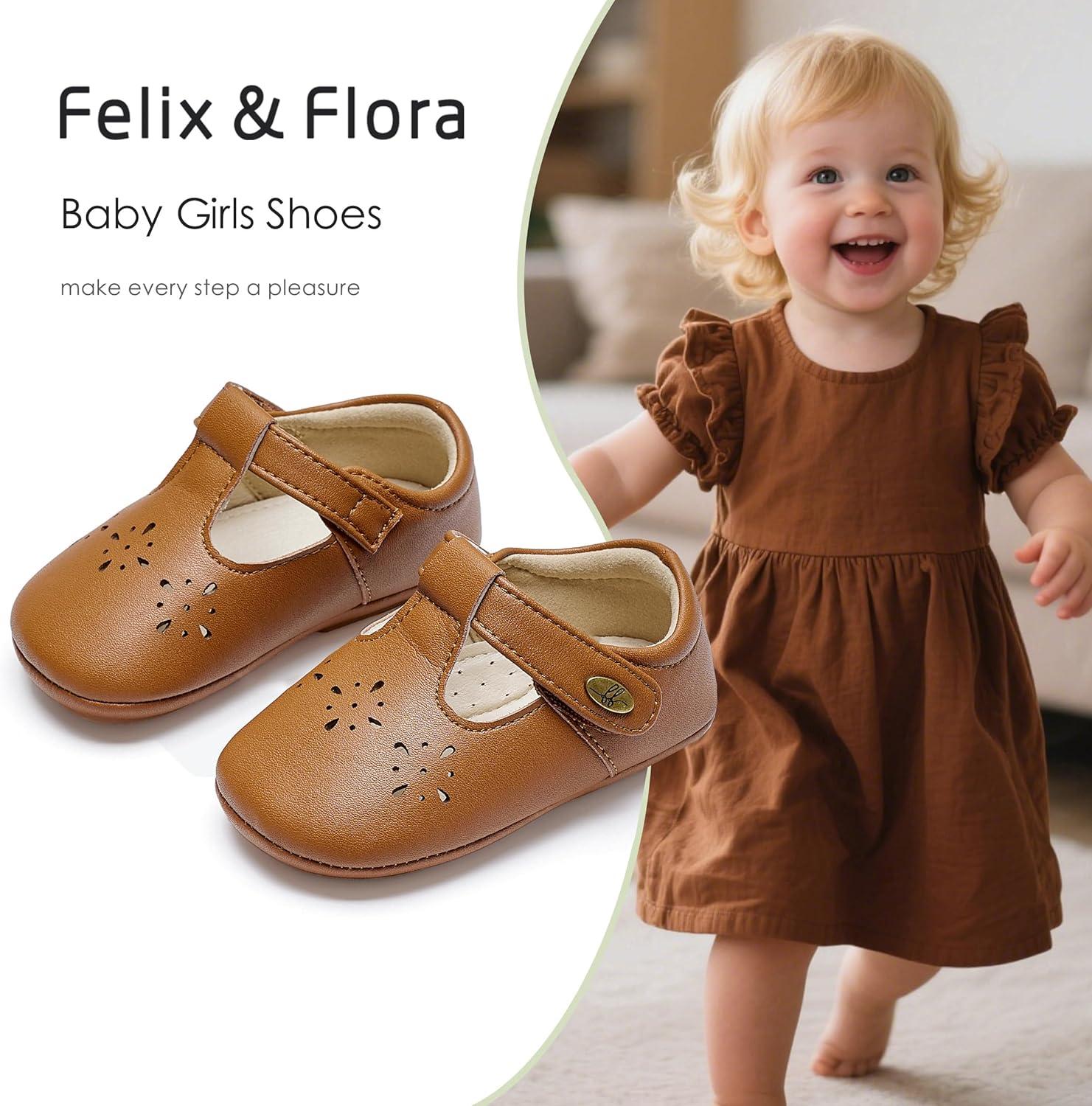 Felix & Flora Baby Dress Shoes – Infant Baby Girls Mary Jane Flats Moccasinss Soft Sole Walking Crib Shoes(Bn34-black)