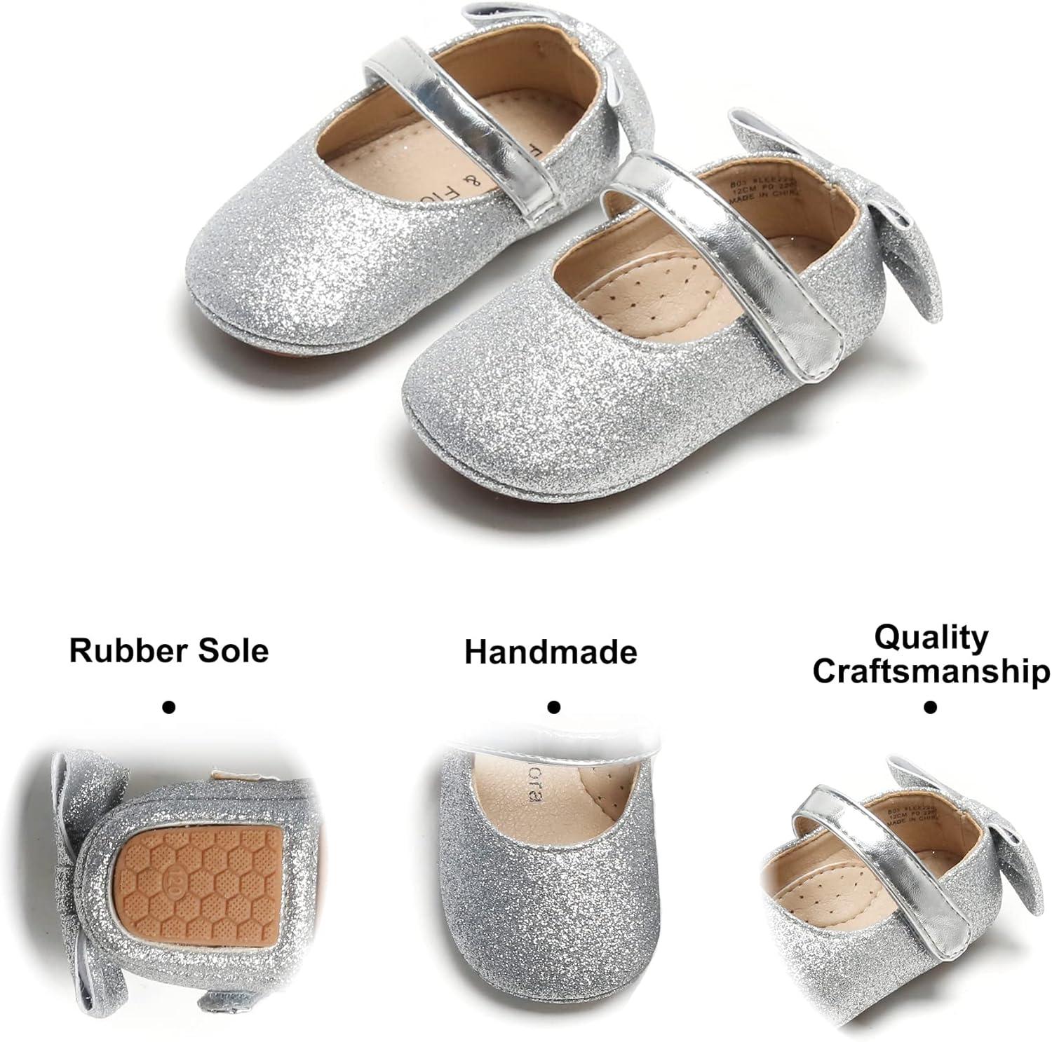 Soft Sole Baby Shoes – Infant Baby Walking Shoes Moccasins Rubber Sole Crib Shoes(B05-glitter Silver)