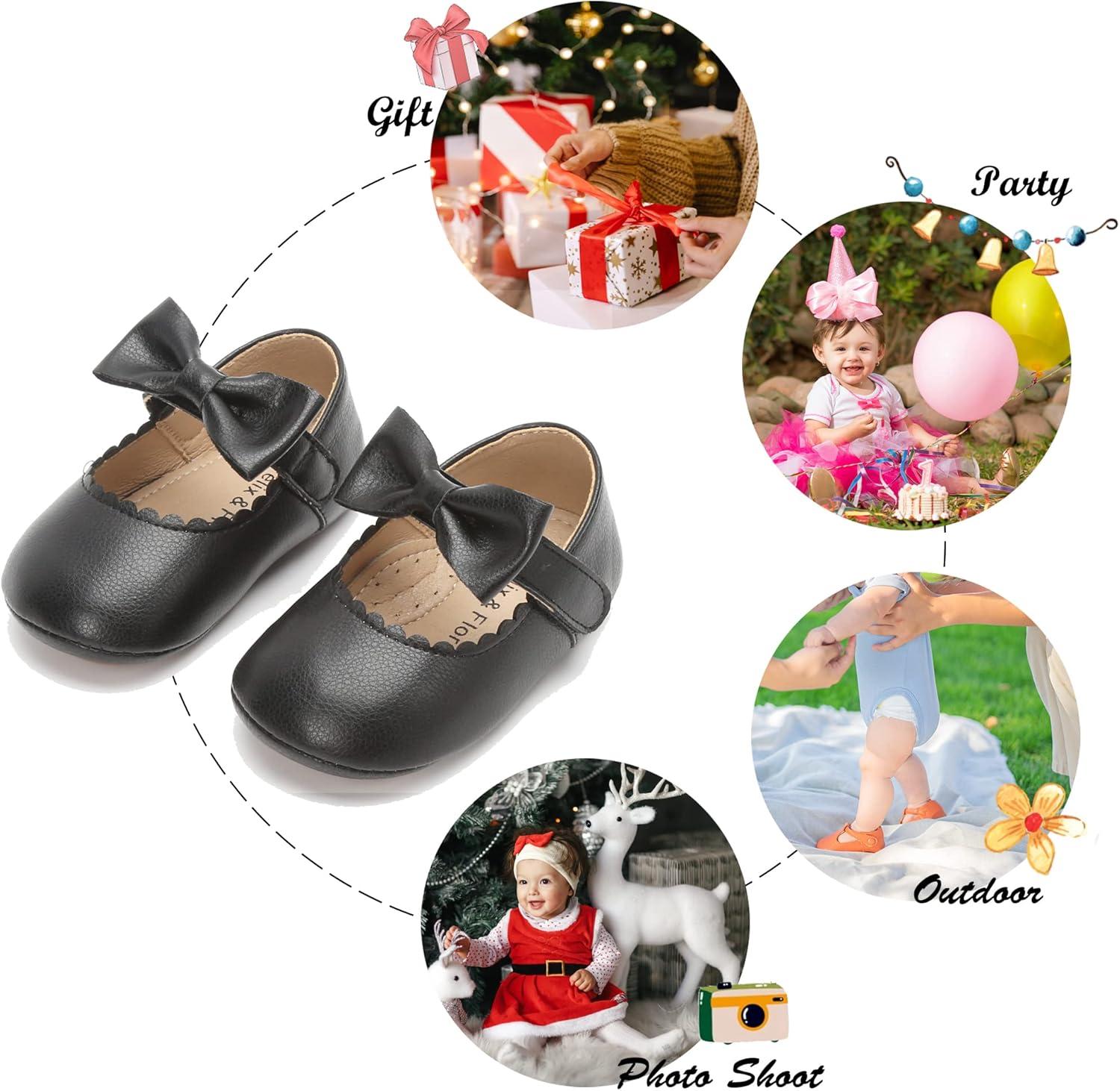Felix & Flora Toddler Little Girl Mary Jane Dress Shoes – Ballet Flats for Girl Party School Shoes(B382-black)