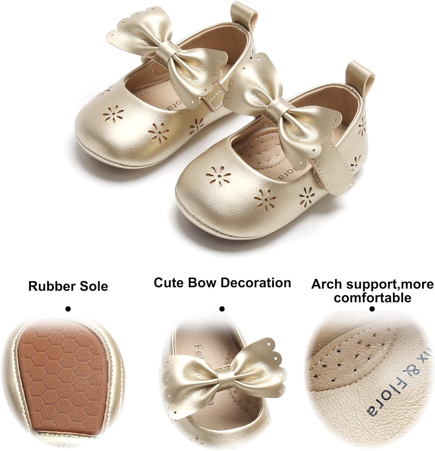 Soft Sole Baby Shoes – Infant Baby Walking Shoes Moccasins Rubber Sole Crib Shoes(B8529-gold)